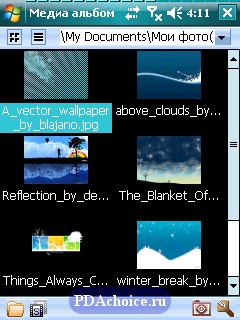 Медиа Альбом – программа для просмотра картинок. От стандартного приложения «Фото и видео» отличается возможностью выстраивать картинки плиткой, списком или таблицей. Также приложение имеет возможность разворота изображений и прямого перехода в программу для последующего редактирования.