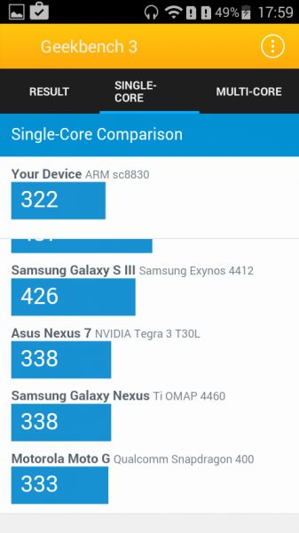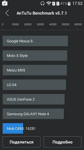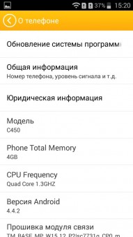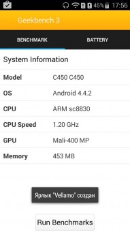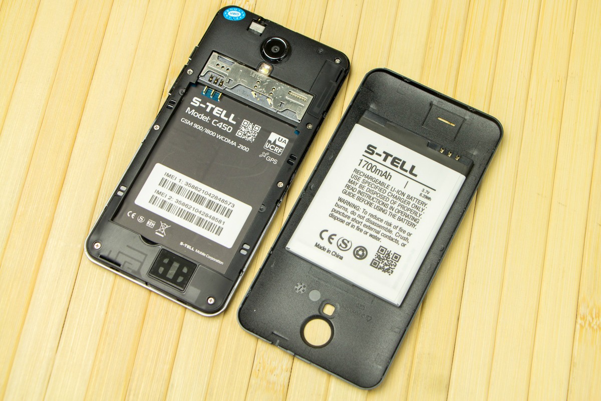 Обзор S-Tell C450 - смартфон для одной рукиВ очередной погоне за компактностью и удобством в пользовании одной рукой, наш взор пал на двухсимочный S-Tell C450 с 4.5-дюймовым IPS-экраном, элементами дизайна Samsung Galaxy S5 и ценником всего в $77. Конечно, попав на обзор, смартфон был тщательно изучен, и теперь мы готовы поделиться результатами тестирования. Лень читать текстовый обзор? Смотрите видео-обзор...Комплект поставкиА начнем обзор мы традиционно с комплектации. Последней помимо самого S-Tell C450 предусмотрены адаптер питания, кабель microUSB-USB и руководство пользователя. Одним словом, стандартный комплект поставки бюджетного устройства. ДизайнЕсть за что глазу зацепиться и в дизайне тестируемой модели. К примеру, тыльная сторона S-Tell C450 выполнена из шероховатого пластика с текстурой «в точечку». Глядя на нее, вы наверняка вспомните Samsung Galaxy S5, который в свое время из-за такого оформления в шутку прозвали «пластырем». Однако шутки шутками, но если практической точки зрения такая текстура может и не имеет никакого эффекта, вместе с тем, выглядит интересно. Причем это справедливо в отношении как белой, так и черной версии смартфона. К другим плюсам используемого в S-Tell C450 материала могу также отнести приятные тактильные ощущения и абсолютное его равнодушие к отпечаткам пальцев. А еще задняя крышка очень плотно сидит на корпусе смартфона благодаря многочисленным пазам по периметру и также легко снимается с него с помощью специального зазора. Из того, что прячется под ней: съемный аккумулятор, два слота для SIM-карт и один для карт памяти microSD. «Горячая» замена ни первых, ни вторых не предусмотрена. Из функциональных элементов на тыльной панели отмечу прорезь мультимедийного динамика, логотип компании-производителя, LED-вспышку и немного выступающий над поверхностью объектив 5Мп камеры, обрамленный блестящим алюминиевым кольцом. Боковые грани девайса также опоясывает тонка рамка из алюминия. Справа в нее врезаны кнопка питания и качелька регулировки громкости, причем так близко друг от друга, что нажимая кнопку включения/выключения, можно случайно прибавить звук. Снизу расположен микрофон, а сверху 3.5мм аудиовыход и порт microUSB. В верхней части передней панели S-Tell C450 находится глазок 2Мп фронтальной камеры, прорезь разговорного динамика и датчик приближения, а в нижней три сенсорные кнопки управления. Подсветки они не имеют, однако, проблем с их использованием в темное время суток не возникало. Аккуратная качественная сборка всех деталей, учитывая бюджетный ценника гаджета, приятно удивила. Отдельно стоит отметить его компактные размеры - 135х67х9.8 мм при весе 122 грамма, благодаря которым он не только удобно лежит в ладони и помещается в кармане любых брюк, но и максимально легок в управлении одной рукой. ДисплейНе последнюю роль в этом сыграла и небольшая диагональ дисплея - 4.5 дюйма. Экран выполнен по IPS-технологии и имеет разрешение 854x480 точек. Если на пикселизацию еще можно сетовать, то углы обзора не вызывают никаких нареканий. Запас по яркости - хороший. Минус, для некоторых пользователей, лишь в отсутствии автоматической регулировки подсветки. Нигде нет упоминания о том, защищен ли экран стеклом и если да — то кто производитель. Впрочем, за время тестирования на нем не образовалось ни одной царапины. Кроме того, он довольно устойчив к появлению отпеча