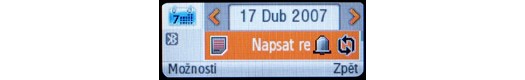 Основное меню в форме строк со значками Навигационная кнопка может дать моментальный доступ к одной из 15 функций, если вы внести соответствующие настройки. Не столь удобно, что в режиме ожидания центральная клавиша навигационной кнопки (которая в другое время подтверждает выбор пункта меню) открывает домашнюю страницу WAP-браузера, что автоматически ведет к включению другой стороны телефона.