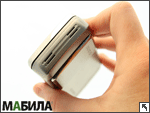 Как нынче повелось, камерофоны, в большей части, двуликие, то есть лицевая часть у них телефонная, а задняя – от фотоаппарата. Но Samsung и тут всех перещеголял, ведь когда слайдер закрыт, то может показаться, что у вас в руках обыкновенный фотоаппарат. То, что это телефон, можно понять, сдвинув слайд и открыв цифровой блок клавиатуры. Естественно, это не могло, не отразиться на эргономике. Поэтому об удобстве пользования можно сказать, что эргономика тут ниже среднего уровня. Особенно разочаровали кнопки приема/отбоя звонка — они находятся слишком низко, и пятипозиционный навигационный блок – кнопка подтверждения слишком мелкая и утоплена в корпус. Механизм автодоводки слайда плавный и четкий, корпус открывается и закрывается тихо, плохо только, что нет упора для пальца, открывать слайд приходится, упираясь пальцем в дисплей. Присутствует небольшой люфт половинок, однако не сильный, а добротность механизма дает надежды на то, что он не будет расшатываться в дальнейшем.