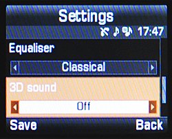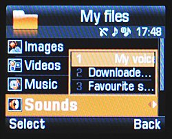 Файлы структурированы по следующим категориям: картинки, видео, музыка, звуки, прочее. Чтобы они были видны через Bluetooth, их надо наделить соответствующими правами. Передача данных по Bluetooth критически медленная, всего 20 кБ/с. Кроме того, наш тестовый телефон иногда отказывался соединяться с другими устройствами и принимать файлы. Скорее всего, это проблемы конкретного девайса, так как старшая модель Samsung U600 таких проблем не имеет. HTML-браузер есть, но при таком низком разрешении экрана его использование может быть затруднительно. Браузер построен на движке Net Front, работает стабильно и быстро. Про него и плеер мы расскажем в обзоре U600. Программы Image editor и Image stamp позволяют совершать базовые операции с графическими файлами. Работы на удивление происходят очень быстро. За несколько кликов можно настроить яркость, контрастность, цвет, уровни и применить ряд несложных эффектов. Также есть функции поворота и вырезания части картинки. Результат можно послать по Bluetooth на телефон или принтер. Диктофон работает во время звонка. Число будильников равно пяти. Каждый обладает богатыми настройками: частота срабатывания, мелодия, тип мелодии, громкость мелодии, повторное срабатывание. Камера