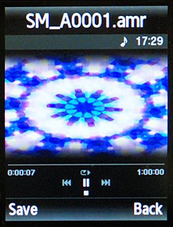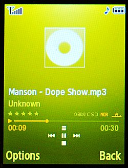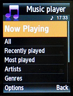 Звучание плеера просто идеальное благодаря начинке от Bang&Olufsen. Звук лучше, чем в большинстве МР3-проигрывателей. На максимальной громкости со штатными наушниками плеер работает до 12 часов. Найти нужный трек можно используя следующие шаблоны: Последние проигрываемые, Недавно проигрываемые, Все, Чаще всего проигрываемые, Исполнители, Жанры, Альбомы, Композиторы, Плейлисты. Проигрываемую композицию можно переслать по Bluetooth и установить в качестве мелодии. Поддерживается система рейтингов. Рейтинг влияет на частоту проигрывания в режиме случайного воспроизведения. Имеется эквалайзер (классика, джаз, рок, обычный), система расширения стерео. Если карта памяти высокой емкости (1 Гб и более), то при запуске плеера иногда возникает зависание примерно до 30 секунд. В процессе игры ситуация не повторяется. Во время работы с Bluetooth меню не блокируется. Скорость передачи данных находится на уровне 110 кБ/с. В телефоне 62 Мб памяти, но пользователю доступно порядка 40 Мб. Подключение по USB возможно в трех режимах: PC Studio, Mediaplayer и режим flash-карты. Диктофон работает в режиме разговора. Кроме того, можно включить режим шепота, значительно увеличивающий чувствительность микрофона, и режим громкой связи.