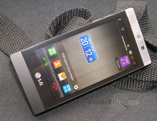 Маленькая ремарка. Несмотря на то, что Nokia 5530 Xpress Music относится к классу смартфонов, а не телефонов, мы, все же, решили включить ее в нашу выборку по двум причинам: модель колоссально успешна в продажах, а, кроме того, она чрезвычайно компактная сенсорная и очень стильная. Итак, что же мы видим. LG Mini GD880 «обошла» всех конкурентов по компактности размеров, уступив, однако, немного в весе. Объясняется это просто – в корпусе присутствует достаточно большое количество металлических вставок. Однако благодаря именно этим вставка устройство на выходе приобрело более строгие, четкие и элегантные черты. LG GD880 Mini ориентирована не только на представительский класс, менеджеров среднего звена и бизнес-леди, но и на обычных пользователей. LG удалось отыскать незанятую еще нишу в сегменте сенсорных аппаратов и создать красивый, стильный телефон универсального позиционирования. Скажем, преуспевающему бизнесмену модель поможет всегда оставаться на связи, а также иметь соответствующий статусу мобильный «аксессуар». А, например, меломанам и Интернет-серферам с таким компактным сенсорным «мобильником» будет удобно «путешествовать» по Сети, или просто наслаждаться хорошим звучанием встроенного мр3-плеера. Женская половина человечества наверняка оценит красивый дизайн, а мужская – его функциональность. В общем, этот телефон обречен на успех. Внешний видМодель похожа на небольшой серебряный слиток, ограненный черным гранитным «панцирем». Смотрится аккуратно, очень стильно и по-своему статусно. Большой сенсорный дисплей покрыт глянцевым стеклом, которое напоминает каленое стекло, когда телефон «спит». Над стеклом виднеется серебристый узор с двумя «драгоценными камнями» в виде красиво оформленного окошка фронтальной камеры и прорези коммуникационного динамика. На стыке серебристой каймы и стекла расположен черный алебастровый «глаз» (так мы «окрестили» датчик освещенности окружающей среды).