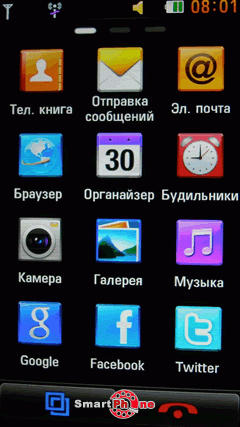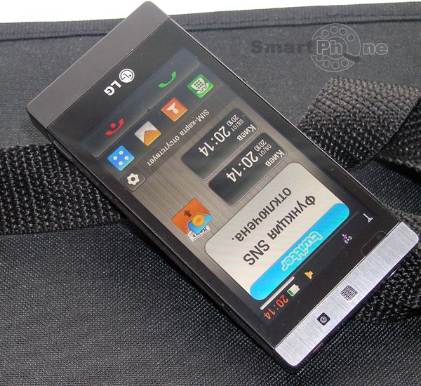 Всю тыльную панель занимает крышка аккумуляторного блока. Крышка пластиковая, тонкая, но на тело корпуса крепится и снимается отлично – мы убедились на практике. Среди всех функциональных элементов на тыльной панели расположен только глазок встроенной камеры. Глазок окантован тонкой металлической каймой и незначительно утоплен в корпус панели, что предположительно защищает его от царапанья. К слову, глазок здесь один, без своего традиционного спутника – глазка вспышки камеры. Видео осмотра телефона, а также изучения боковых элементов и разъемов ДисплейДисплей в LG GD880 Mini изготовлен на основе резистивной матрицы. Это означает, что навигация по меню возможна только при посредничестве пальца или пальцев руки. Другим способом не получится – мы пробовали. Навигация по меню пальцем неизбежно приводит к маранию дисплея. Чем управление интенсивнее, тем больше будет заметы отпечатки пальцев. Увы, но это проблема всех глянцевых дисплеев. Диагональ дисплея, а также разрешение и цветопередача весьма неплохие: 3.2 дюйма, 480х854 точек, 262144 цветов соответственно. Дисплей обладает режимом экономии энергопотребления, который переключается из специального меню. Во время пребывания дисплея в режиме энергопотребления цветопередача информации хорошая только в том случае, если пользователь пребывает в не ярко освещенном помещении. Если работа с Mini происходит на улице в яркий солнечный день, лучше отключить энергосберегающий режим. Чувствительность дисплея хорошая. Во время тестирования зависаний практически не было, а те, что были, можно объяснить некоторыми недоработками инженерной версии терминала, которая, собственно, и пребывала у нас в гостях. Ниже предлагаем читателям посмотреть небольшой видеоролик, на котором все предметно запечатлено. Оболочка S-classОболочка S-class претерпела некоторые изменения и, соответственно, получила приставку «UI».