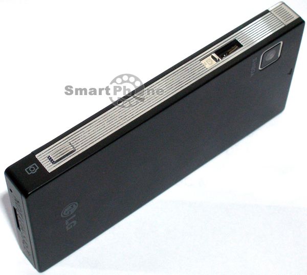 На правой боковой панели расположен слот для карт расширения памяти, а также кнопка активации встроенной камеры. Поскольку собственной памяти в LG GD880 Mini всего 100 Мб, пользователю, любящему различные «медиапримочки», память придется расширять. Это можно сделать в режиме «горячей» замены карт памяти, за что производителю огромное «спасибо».