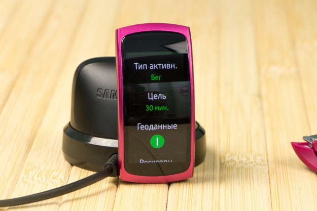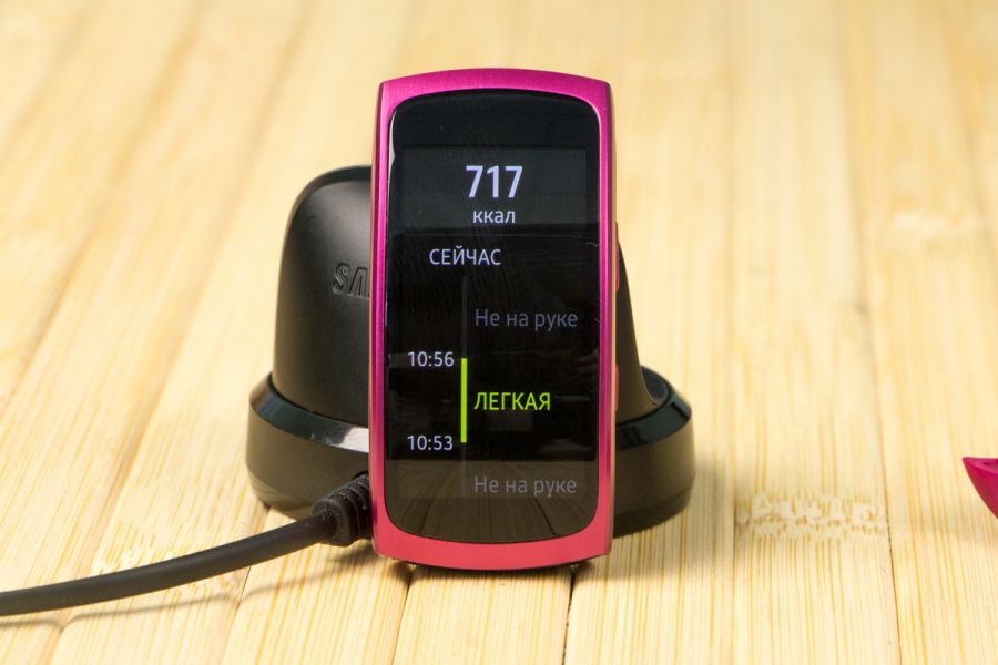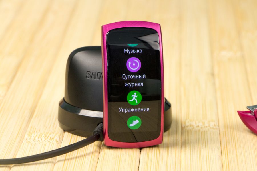 Обзор смарт-браслета Samsung Gear Fit2 (SM-R360)Обновленный дизайн, усовершенствование технические характеристики и GPS-модуль - все это лишь малая доля изменений, коснувшихся нового поколения фитнес-трекера от Samsung. Чем еще порадует пользователя Gear Fit2 стоимостью $180, мы расскажем в обзоре. Дизайн и функциональные элементыХотя рынок фитнес-трекеров развивается ударными темпами, многофункциональных, но в тоже время и привлекательных внешне решений, которых бы не хотелось бы снимать с руки, на нем все еще мало. В этом плане, как по мне, Gear Fit2 является приятным исключением даже в сравнении с моделью предыдущего поколения. За счет сочетания темного изогнутого дисплея и в моем случае ярко-розового глянцевого пластика, выглядит гаджет очень стильно. А благодаря небольшим габаритам – 24.5х51.2 мм, еще и аккуратно, причем что на крупном мужском, что на хрупком женском запястье. Весит он всего 28 грамм, так что руку не отягощает, ну и сама форма, на мой взгляд, идеальна – даже косточку около кисти не натирает. Резиновый ремешок Gear Fit2 съемный, так что в случае необходимости его можно заменить, например, на большего или меньшего размера. Крепление надежное, по крайней мере, за все время тестирования самопроизвольно ничего не отсоединялось. Не возникало проблем и с защелкой - фиксация четкая, браслет не расстегивается и не растягивается даже во время интенсивных занятий спортом. Кстати, корпус Gear Fit2 не полностью изготовлен из пластика, по крайней мере, производитель упоминает также алюминий и стекловолокно. Последние, вероятно, достались нескольким выводам функциональных элементов. Из последних на тыльной части: коннектор зарядного блока и датчик сердечного ритма. Справа обустроены две механические кнопки: «Питания» и «Назад». Они ощутимо выступают над корпусом, потому легко нажимаются даже на ощупь. Gear Fit2 защищен от воды и пыли в соответствии со стандартом IP68, что позволяет не только не снимать браслет во время мытья руки, но и погружаться с ним на глубину до 1,5 м на полчаса. Как вы понимаете, сборка при таких заявленных гидровозможностях просто не может быть не идеальной - отличная подгонка всех элементов и, как итог, никаких швов и зазоров. ЭкранSamsung Gear Fit 2 оснащен 1,5-дюймовым сенсорным дисплеем с разрешением 216х432 точки, то есть экран стал меньше, чем у предшественника, но значительно четче. В основе Curved Super AMOLED-матрица с широкими углами обзора и хорошей цветопередачей. Запаса яркости гаджету хватает даже для яркого летнего солнца. Ее уровень, как и размер шрифта, и многие другие параметры можно установить в разделе «Настройки». Еще одно серьезное улучшение в сравнении с моделью 2014-го года, которое особенно полезно будет любителям активно размахивать руками, - использование защитного стекла Gorilla Glass 3. На прикосновения сухими пальцами экран Gear Fit 2 реагирует четко, а вот на влажные не всегда. Производителю, по правде говоря, стоило бы данный факт предвидеть, так как устройство все же ориентировано в первую очередь на спортсменов. Аппаратная начинкаРаботает Gear Fit2 под управлением фирменной операционной системы Tizen и в отличие от предшественника совместим не только с мобильными устройствами Samsung, но и с гаджетами других производителей. Правда, при условии, что последние оснащены не меньше, чем 1.5 ГБ оперативной памяти и ОС Android версии 4.4 и выше. «Под капотом» у Gear Fit2 