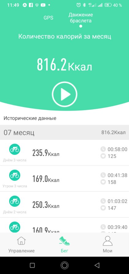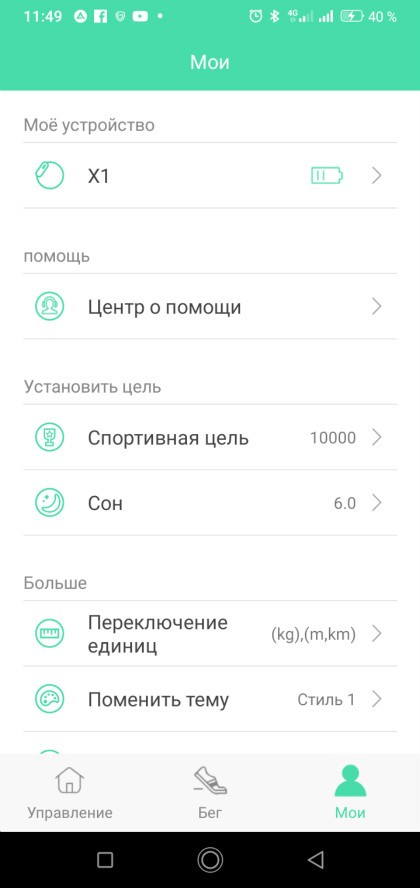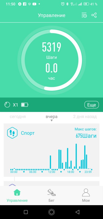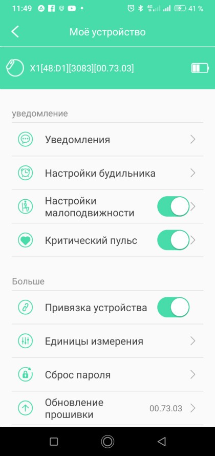 Тут можем запустить мониторинг сердечного ритма, просмотреть уведомления, найти смартфон, управлять воспроизведением музыки на смартфоне, секундомером, таймером обратного отсчета и настройками, включая яркость. Слотов для уведомлений немного, так что будете видеть только последние. Приложение «H Band» Для спаривания со смартфонами обозреваемым смарт-часам нужно приложение «H Band». Программа не особо красочная и графики у нее скромные, но всю необходимую информацию добыть из нее можно. Спортивные режимы Blackview X1 умеют подчитывать активность по 9 режимам: