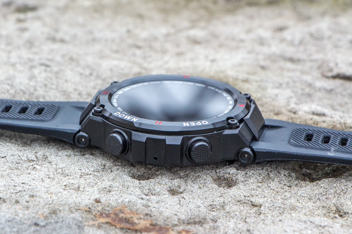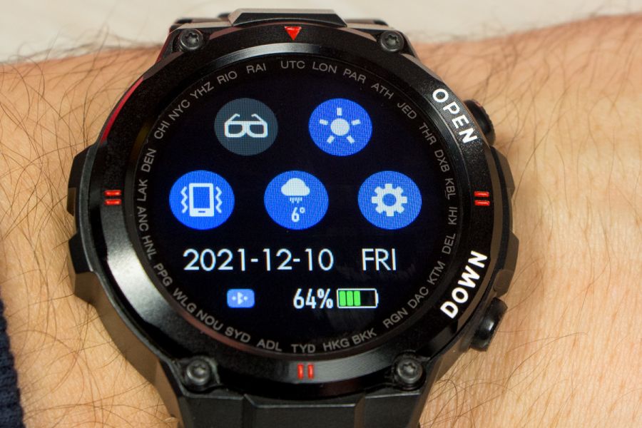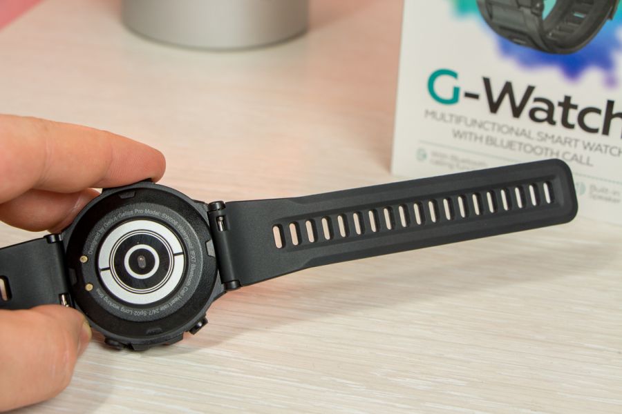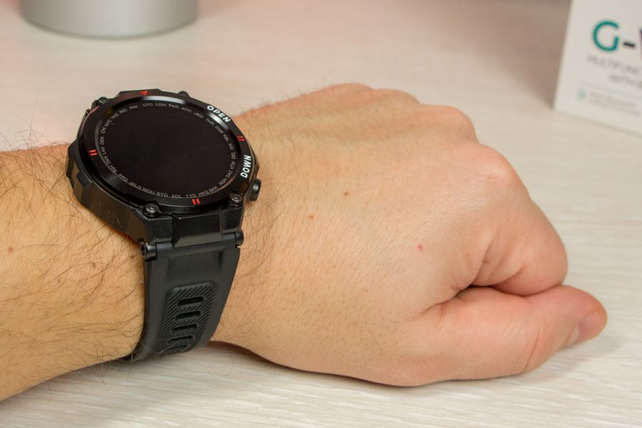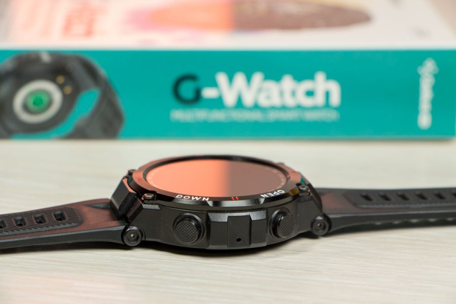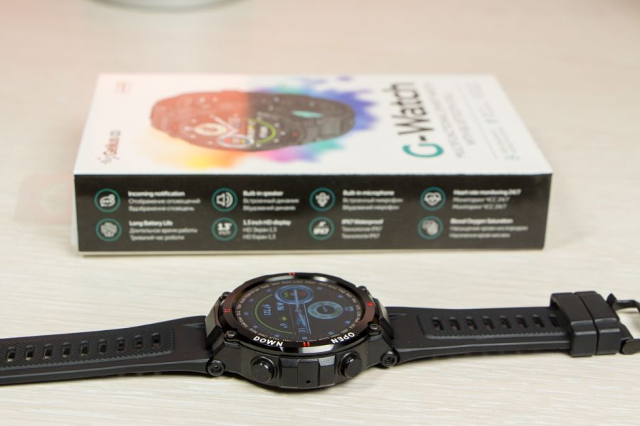 Обзор смарт-часов Gelius Pro GP-SW008 (G-WATCH): «мужской» корпус, контроль показателей здоровья и активностиGelius Pro GP-SW008 – внешне агрессивные смарт-часы с ярким дисплеем, хорошим набором функций по отслеживанию активности и состояния здоровья, а также защитой от влаги IPX7. Более подробно о всех функциях, времени автономной работы и впечатлениях после двух недель пользования узнаете из обзора. Дизайн и Корпус Gelius Pro GP-SW008 предлагаются покупателю в одном размере и трех цветах: черном, сером и зеленом. Почему-то мне кажется, что чаще всего покупают черную версию. В ней черного цвета безель вокруг дисплея и основа корпуса. В серой и зеленой версии безель остается черным. Размеры корпуса – 45x45x10.8 мм. Часы не самые большие из представленных на рынке, органичнее всего будут смотреться на среднего размера или большой мужской руке. Вес с ремешком – 54 г. Прочный внешний вид подчеркивают металлические головки винтов и текстурированные кнопки. Клавиш две, они подписаны как OPEN и DOWN. Верхняя активирует экран одиночным нажатием, а повторным тушит его. Нижняя также активирует дисплей, но последующее ее нажатие переключает статистику активностей. На нижней части корпуса размещено окошко с сенсорами и два контакта для подключения зарядного устройства. На правом торце между клавиш находится микрофон, а на левом торце – динамик. На лицевой панели производитель предусмотрел приподнятый бампер для защиты экрана. Если будете одевать под классическую рубашку, будет смотреться немного неуместно. А вот под спортивный стиль или кэжуал в самый раз. Корпус защищен по стандарту IPX7. А значит попадание под воду с полным погружением никак не повлияют на работу часов. Ограничение по большому счету только по времени – погружения не дольше 30 минут на глубину до 1 метра. Проверил это на деле: мыл посуду, принимал душ, плавал в бассейне.