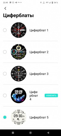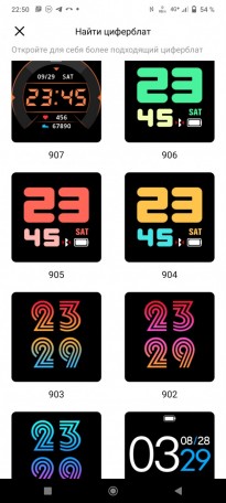 Хоть часы и не прошли сертификацию по военному стандарту MIL-ST-810G их корпус внушает доверие. В этих смарт-часах не страшно запустит руку в ящик с инструментами, под ванную, да в любую неизвестность на пути которой встречаются острые и жесткие предметы. Я так делал и внешность тестируемого устройства не пострадала. С этими смарт-часами нет страха повредить или просто поцарапать корпус. В дополнение к прочному корпусу покупатель получает силиконовый ремешок. Ширина в месте крепления – 22 мм. Длина ремешка 260 мм. Снимается легко, заменить можно на другой цвет или другой материал. Количества и размеров прорезей в ремешке достаточно, чтобы рука не потела. Дисплей Gelius Pro GP-SW008 комплектуются 1,3-дюймовым дисплеем с матрицей, у которой отличный запас по яркости и нет вопросов к углам обзора. Это IPS модуль с разрешением 240х240 пикселей. Информация с экрана считывается легко даже при переизбытке внешнего освещения. Автоматической подстройки подсветки не предусмотрено, только вручную по одному из пяти уровней. На взмах руки дисплей загорается быстро. Циферблаты Базово владелец часов получает 4 циферблата. Субъективно три из них в одном стиле и мне нравятся совсем другие. Четвертый – лично Ваш, в котором через приложение DaFit можно добавить любую картинку, хоть однотонную, хоть свое фото.