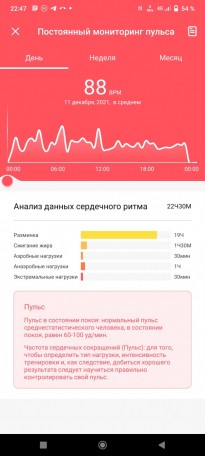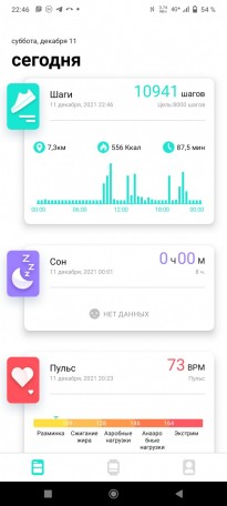 Неплохо было бы добавить еще плавание, раз уж добавили водозащиту корпуса. Часы сами не замечают, когда у Вас началась тренировка, так что не забывайте ее включать при необходимости. Независимо от того, что вы выберете, вы сможете увидеть продолжительность тренировки, расстояние и пульс. Сон Сон считается автоматически, когда сенсоры часов понимают, что вы отдыхаете. Статистику по дням удобно смотреть в приложении. Не всегда сенсоры точно определяли период отхода ко сну, но общее время приблизительно соответствует действительности. Важный нюанс – не всем будет удобно спать с обозреваемым устройством на руке. Пульс Могу утверждать, что подсчет пульса точный. Сравнивал с смарт –браслетом Xiaomi Mi Band 6 и пульсометром, который видите на фото ниже.