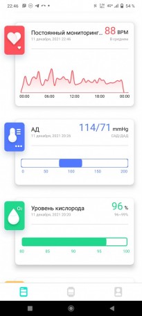 Артериальное давление Сложность подсчета этого показателя на нательных гаджетах все еще не может гарантировать точности. И это проблема не только Gelius, но и других брендов. Сравнивал замеры с прибором, который ранее не вызывал нареканий по точности. Показатели были следующими: