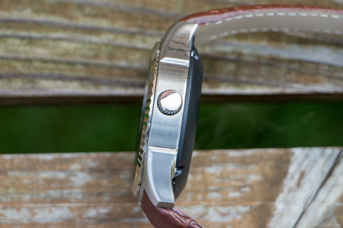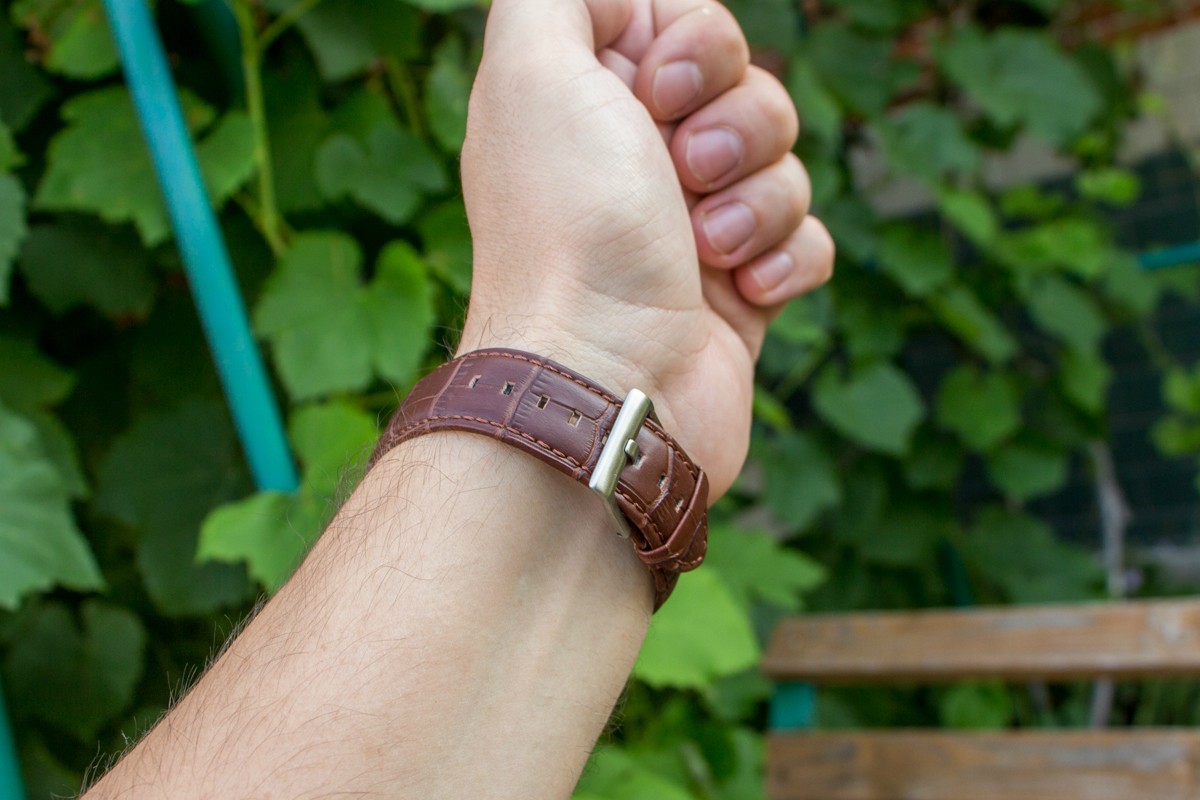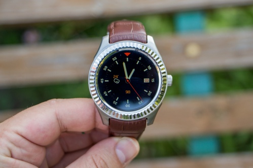 Обзор смарт-часов NO.1 D7: классика на AndroidСмарт-часы NO.1 D7 внешне очень трудно отличить от классических наручных часов, ведь их корпус не выдает наличие каких-либо смарт-функций, а ремешок вообще кожаный. Но внутри металлического корпуса все-таки установлен Android и выделено место под SIM карту. Больше информации об этом устройстве стоимостью $100 можно узнать в нашем обзоре. Дизайн и корпус NO.1 D7- это не спортивные смарт-часы. Когда впервые достаешь их из коробки, то видишь корпус с полированным серебром и ремешок под кожу крокодила. Мода на последний уже почти прошла, но имеем именно такой вариант. Так, что внешность гаджета прямо намекает, что одевают их под костюм или кэжуал. А вот на парне в шортах и футболке они будут смотреться не очень актуально. Длина ремешка 262 мм, а габариты блока смарт-часов 53х49х15 мм (вес - 66 г). На мужской руке смотрятся хорошо. Нареканий по части сборки нет. Влаго и ударозащиты также не предусмотрено. Хотя стекло отмечено, как усиленное. Ремень не из мягкой кожи, так что сможет выдержать грубое обращение с собой. Производитель заявляет, что это кожа итальянской овечки. Хотя не все то, что металл блестит. Вернее это сталь 316L, она тут и блестит и нет. По бокам этот материал матовый. А вот безель и кнопка светятся с избытком и не многим это понравится. В продаже, кстати, есть черная версия с черным ремешком. На корпусе присутствует всего одна кнопка. Она реагирует на длинное и короткое нажатие. Из пластика в NO.1 D7 только тыльная сторона. На ней размещена 4-контактная площадка для подзарядки, круглое окошко датчика измерения пульса, а также заглушка для слота под nanoSIM карту. Дисплей Экран у NO.1 D7 не самый лучший в своей ценовой категории. Это 1,3 дюймовая IPS матрица с разрешением 240х240. Цветопередача и углы обзора у нее хорошие, а вот зернистость видно. Отпечатки пальцев вытираются без особого труда. Яркость можно регулировать вручную или выбрать один из трех предустановленных уровней. Максимального значения подсветки на ярком солнце будет достаточно. Аппаратная начинка Работу интерфейса и возможность запуска приложений обеспечивает процессор MediaTek MTK6572, который работает на частоте 1,2 ГГц. Этот чип реализует в NO.1 D7 функцию полноценных часов и телефона в одном корпусе. Устройство может работать в сетях GSM и 3G. (2G: 850/900/1800/1900 МГц, WCDMA: 850/2100 МГц). Из беспроводных интерфейсов в часах присутствует Bluetooth 2.1 + BLE4.0 и Wi-Fi 802.11 b/g/n, а также полноценный GPS чип. Последний на холодную включается не очень быстро. NFC также есть, но с ограниченным функционалом. ОС и приложения Часы работают под управлением операционной системы Android 4.4. Русский интерфейс для основных разделов и пунктов настроек присутствует. Русская клавиатура есть. Локализация на 4 с плюсом. Набор базовых приложений достаточный и включает в себя калькулятор, браузер, погоду и другие. При включении пользователю сразу отображаются часы. Далее: