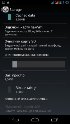 Из 4 ГБ внутренней памяти пользователю доступно всего 2,06 ГБ. Дополнительно можно воспользоваться картами памяти MicroSD объемом до 32 ГБ включительно. Как я уже говорил, поддерживается “горячая” их замена.