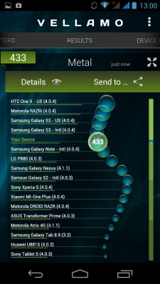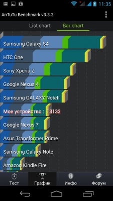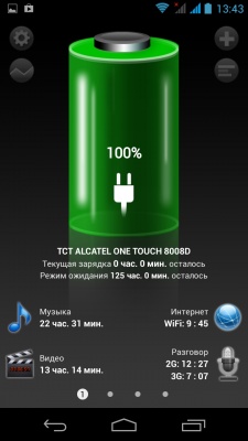 Емкость встроенной батареи 2500 мАч. Так, как на тесте у нас семпл, то при полной нагрузке трубки хватало всего на один рабочий день. Это приблизительно один час разговоров, немного больше двух часов при работе с почтой, серфинге в сети и прослушивании музыки, а также от получаса до часа игры в 3D игру или просмотра видео в высоком разрешении. Официально производитель заявляет о девяти часах в режиме разговора, при условии, что вы пользуетесь сетями 2G. Ниже на скриншотах результаты тестирования батареи специальным приложением-тестером «Батарея HD».
