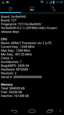 Alcatel One Touch Scribe HD работает под управлением операционной системы Android версии 4.2.1 «из коробки». В основе аппаратной платформы 4-ядерный процессор на 1.2 ГГц Mediatek MT6589 и графический чип PowerVR SGX 544MP. Оперативной памяти 1 ГБ, что вполне оправдано для заявленной стоимости устройства.