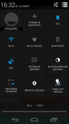 Из беспроводных интерфейсов отмечу наличие Wi-Fi 802.11 b/g/n, поддержку Wi-Fi Direct и Wi-Fi Display. В устройстве используется Bluetooth в редакции 4.0, есть датчик положения, электронный компас, A-GPS и FM-радио с поддержкой RDS.