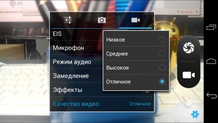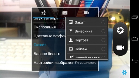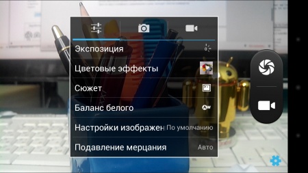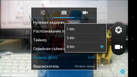 Основная камера получила сенсор на 8 Мп, она дополнена вспышкой, автофокусом и 4-кратным цифровым зумом. С ее помощью можно снимать фото в максимальном разрешении 3600х2160, а если появится необходимость, то и уменьшить разрешение прямо в приложении до 5 Мп или 1 Мп. Кроме того, в режиме фотосъемки можно делать HDR снимки, создавать панорамы и 3D фото, настроить автоматический спуск затвора при распознавании улыбки и установить основные параметры съемки. В частности можно выставить баланс белого, ISO или добавить эффект.