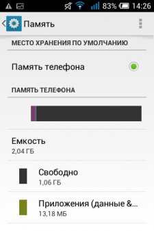 Объем оперативной памяти составляет 512 МБ, а встроенной — 4 ГБ. Если последней покажется мало, то ее можно расширить с помощью карт microSD до 32 ГБ.