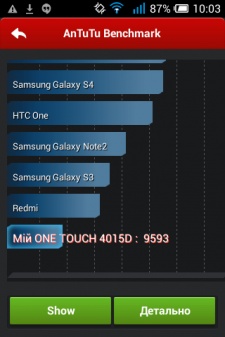 В основе TFT-матрица, обладающая неплохой цветопередачей и небольшими углами обзора. Встроенного датчика освещения нет — яркость подсветки регулируется только вручную. Ее максимума порой не хватает для того, чтобы дисплей смартфона не «слепнул» на ярком солнце.
