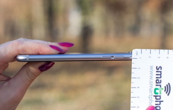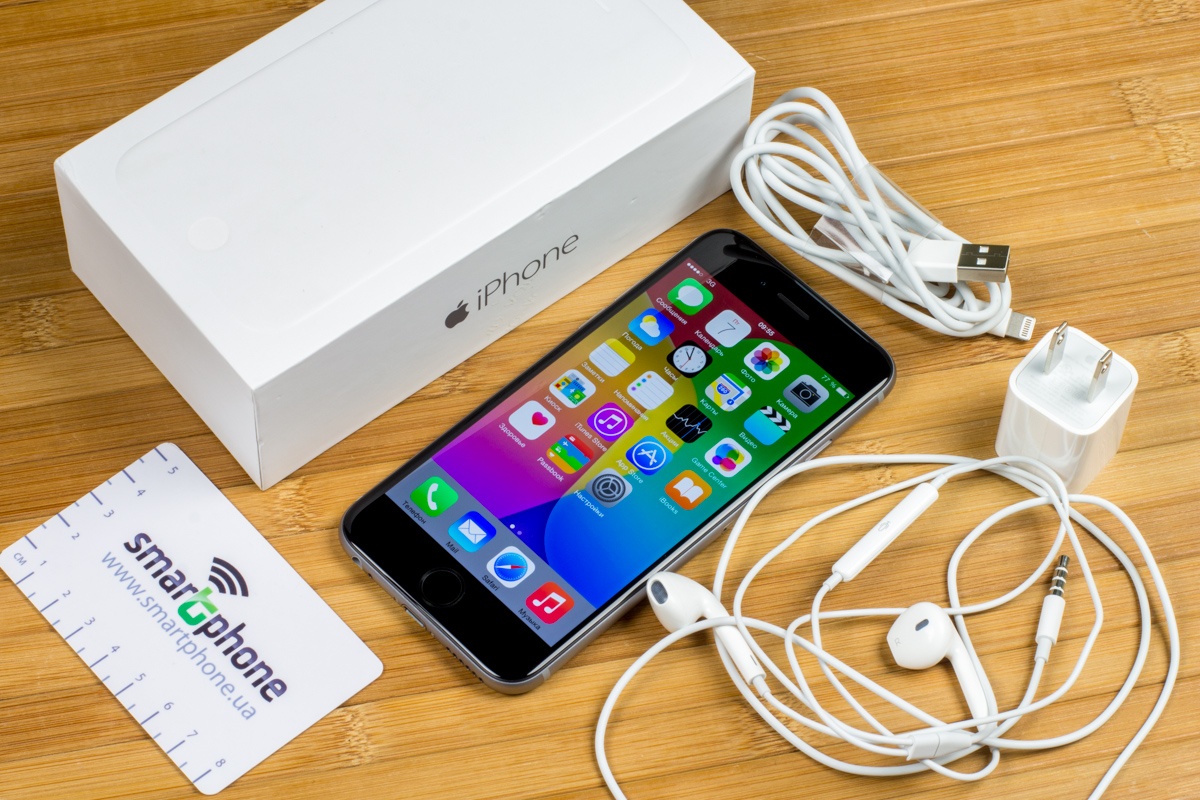 Обзор смартфона Apple iPhone 6 – «яблочная» революция!Apple наконец-то решилась на радикальные меры — флагман iPhone 6 получил не только мощнее и энергоэффективнее «железо» в сравнении с предшественником, но и увеличенный до 4.7 дюймов экран плюс абсолютно новый дизайн. Кроме того, встречаем здесь обновленные и улучшенные камеры с большим количеством разных полезных функций. А вот о том, что еще позволит этому «яблочному американцу» потеснить на рынке не менее «породистых» Android-конкурентов в флагманском-классе, говорим далее. Лень читать текстовый обзор? Смотрите видео-обзор...Упаковка и комплект поставкиКоробка у iPhone 6 получилась не совсем флагманская — белый плотный картон с выдавленным силуэтом смартфона на лицевой стороне. Шутки ради можно предположить, что в Apple так спешила с релизом новинки, что попросту не успели ее покрасить. В любом случае выглядит упаковка не броско, хотя и оригинально — ни у кого ведь еще ничего подобного не было. Из примечательных элементов на ней разве что два красочных логотипа производителя по бокам и наклейки с техническими характеристиками, IMEI и серийным номером на обороте. А вот внутри все традиционно для "яблочных" смартфонов — iPhone 6 "уложен" в специальную пластиковую "ванночку", под ней конверт с руководством пользователя, наклейками и скрепкой для открытия слота с SIM-картой. На самом же дне находится лоток с адаптером питания, Lightning-кабелем и наушниками EarPods в фирменном футляре. Дизайн и материалы корпусаПро дизайн нового iPhone 6 можно спорить долго — одних столь радикальные изменения во внешности смартфона в сравнении с его предшественниками повергли в шок, другие наоборот обрадовались свежему веянью. В шестом поколении внешность популярной модели изменился кардинальным образом. Аппарат «попрощалась» с острыми гранями и прямыми углами — им на смену пришли обтекаемые формы, округлые боковушки и стекло Gorilla glass 3, полностью прикрывающее переднюю панель и плавно переходящее в цельный алюминиевый корпус, образуя с ним, таким образом, визуально единое целое. Материалы, как, впрочем, и полагается флагманам, из разряда премиальных — анодированный алюминий 6000 серии, закаленный для дополнительной прочности, плюс упомянутое уже выше сверхпрочное стекло от Corning. Да и вряд ли бы кто-то «клюнул» на пластик при пятизначном то ценнике. Впрочем, он здесь тоже есть, хотя и в минимальном количестве, — белые пластиковые вставки, прячущие антенны. Именно этот элемент конструкции у многих и вызывает спорные чувства по отношению к новому дизайну «яблочного» флагмана — полосы на задней крышке визуально слегка «удешевляют» смартфон. Кстати, их использование своеобразное «ноу-хау» для Apple — в предыдущих моделях iPhone, как помните, антенны интегрировалась в сам корпус, как-то в iPhone 4/4s, а в iPhone 5/5s использовались вставки из стекла. Касательно такого нашумевшего «недуга» новых iPhone 6 как деформация при ношении в переднем кармане брюк, то это, как показала практика, точно не о тестируемой 4.7-дюймовой модели даже с учетом ее толщины всего в 6,9 мм. Корпус девайса монолитный, не прогибается и не издает ни малейшего скрипа даже при достаточно сильном сдавливании. Конечно, при очень серьезном давлении алюминий будет гнуться необратимо, а неудачное «приземление» на пятую точку с аппаратом в заднем кармане может закончиться трагично абс