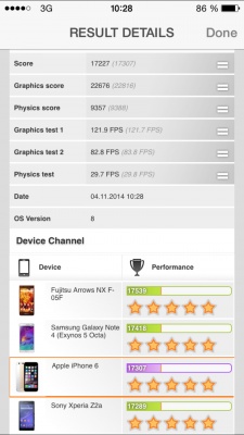Еще одна немаловажная составляющая «железной начинки» iPhone 6 — новая графическая технология Metal, которая является частью iOS 8. Она оптимизирована таким образом, чтобы центральный и графический процессоры могли совместно работать над отображением детализированной графики и сложных визуальных эффектов. На практике ее использование «насытило» изображения богатыми спецэффектами и сделало его максимально детализированным. С таким оснащение iPhone 6 чертовски быстр и подтверждают это не только оценки многочисленных бенчмарков, но и результаты реального повседневного использования — интерфейс «летает», быстро запускаются и работают все без исключения приложения, без проблем воспроизводится видео высокого разрешения и запускаются даже самые ресурсоемкие игры.