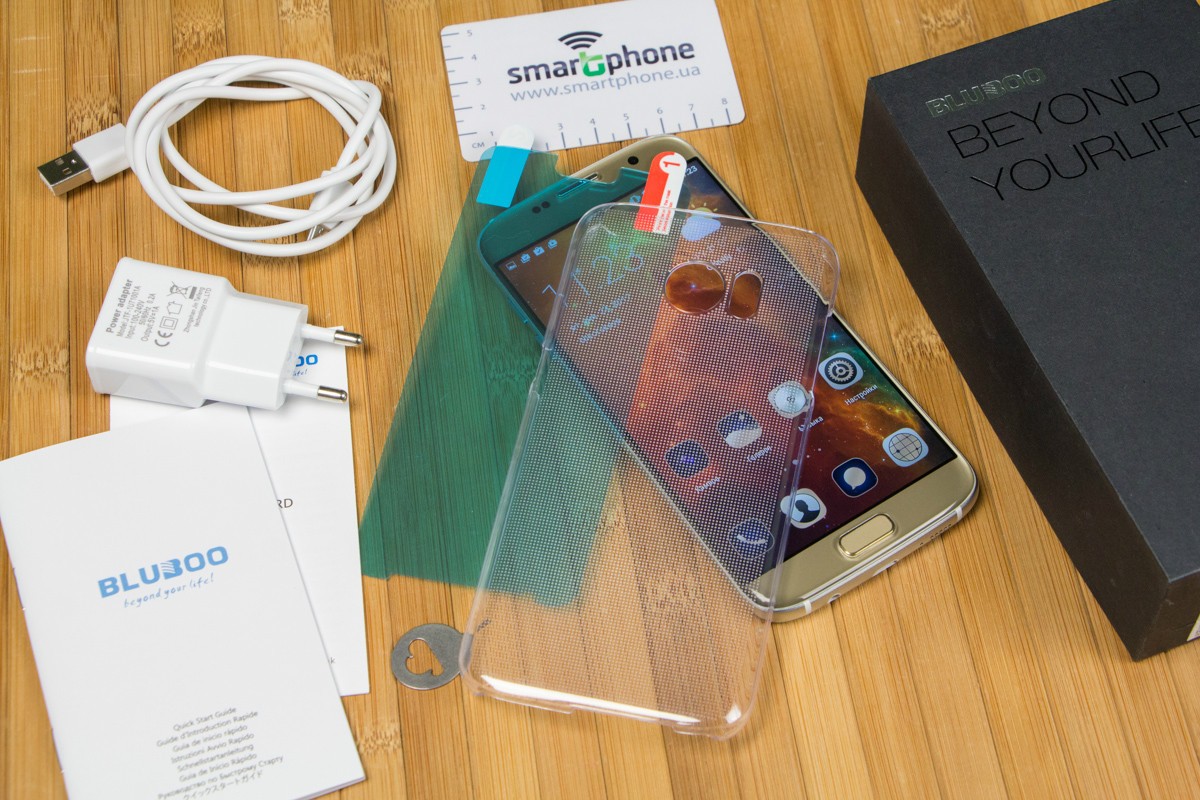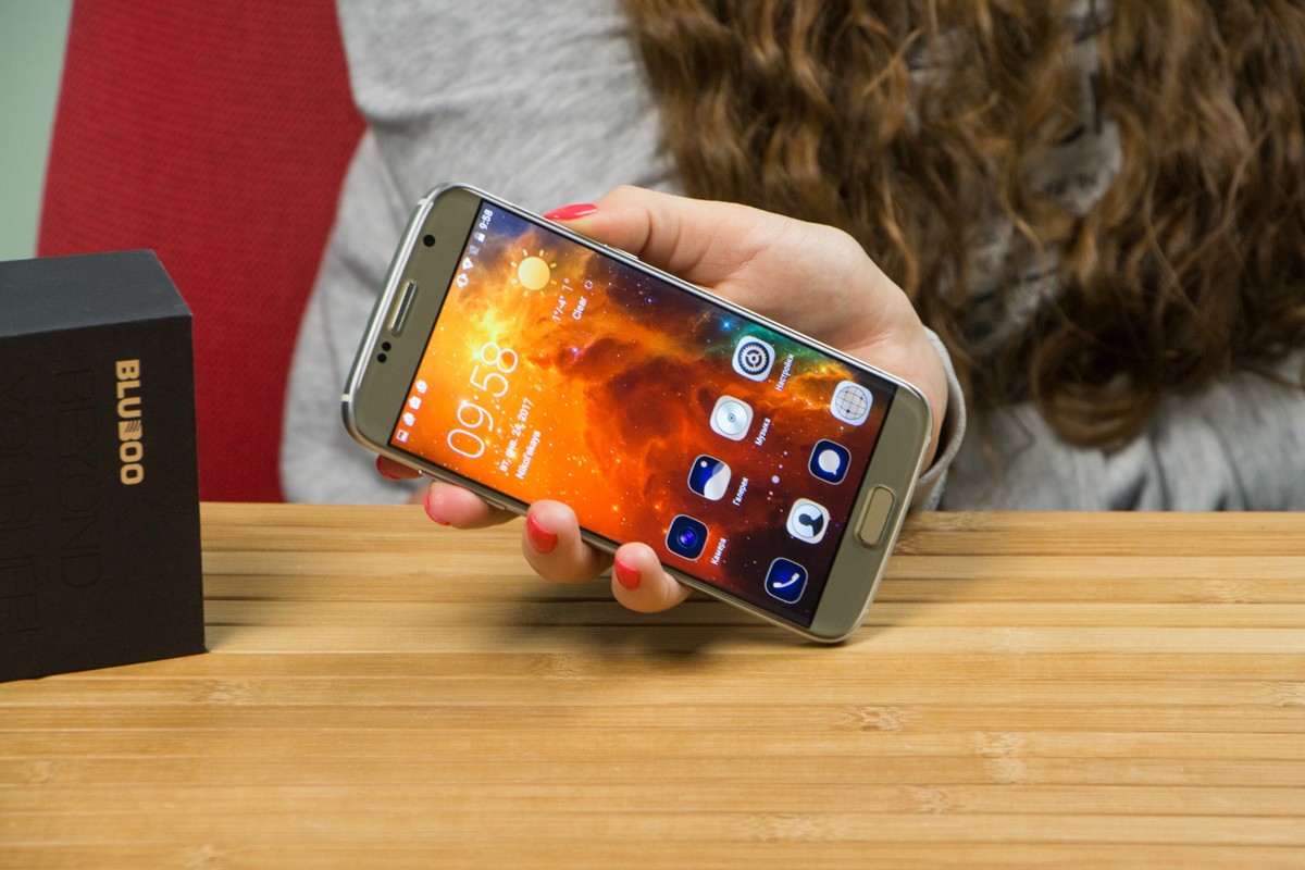 Обзор смартфона Bluboo Edge – китайская копия Galaxy S7 Edge!Двухсимник Bluboo Edge с ценником всего в $120 внешне максимально похож на Galaxy S7 Edge. Кроме того, как и флагман Samsung, он оснащен пульсометром, фронтальным сканером отпечатков пальцев и селфи-камерой на 5Мп. Чем в таком случае обоснована почти шестикратная разница в стоимости трубок и каков он Bluboo Edge в реальности, расскажем далее в обзоре. КомплектацияКак и большинство трубок новоиспеченных китайских брендов, Bluboo Edge поставляется в черной картонной коробке, содержащей из надписей лишь название модели, ну и рекламный слоган. Спецификации смартфона и его IMEI-данные представлены в виде наклеек. Комплект поставки довольно богатый. Помимо самого смартфона, в коробке присутствуют: адаптер питания, кабель microUSB-USB, скрепка для открытия лотка сим-карт, защитная пленка на экран, руководство пользователя и пластиковый чехол, защищающий тыльную часть и торцы аппарата. Дизайн и функциональные элементыВышеупомянутый аксессуар из комплекта помимо защитной функции позволяет также несколько видоизменить дизайн Bluboo Edge, который уж очень похож на Galaxy S7 Edge. Рамка по периметру корпуса модели металлическая, а спереди используется загнутое на боковушки защитное стекло Gorilla Glass 4. Изогнутая тыльная часть изготовлена по специальной технологии, которая придает материалу красивый зеркальный эффект. В повседневном обиходе решение маркое, зато его привлекательность с эстетической точки зрения отрицать сложно. К тому же, именно за счет скругленной задней части гаджет лежит в руке как влитой. Сразу скажу, Bluboo Edge тяжелый – 203 г, да и по габаритам для удобства управления одной рукой велик - 151х72х8.6 мм. Пульсометр Bluboo Edge, как и у Galaxy S7 Edge, вместе со светодиодной вспышкой выделены в отдельный блок и размещены слева от немного выступающего над поверхностью модуля основной камеры, который к тому же опоясывает металлический обод. То, что копия очень точна, подтверждает и расположение функциональных элементов на корпусе. Сверху обустроен микрофон шумоподавления и гибридный слот под две nanoSIM-карты или симку и карту памяти. Снизу - порт microUSB, 3.5 мм аудиовыход, вывод микрофона и мультимедийный динамик. Клавиши регулировки громкости находятся на левом торце смартфона, а кнопка питания на правом. Они заметно выступают за пределы корпуса и имеют отличный отклик. Единственное «но», некоторые элементы выполнены не так аккуратно, как хотелось бы. Дело в том, что нам на тест досталась не розничная модель, а так называемый сэмпл, так что качество сборки коммерческого образца должно будет значительно улучшено. Антенны радиомодулей в Bluboo Edge спрятаны за пластиковыми полосками, расположенными на верхнем и нижнем торцах, так что серебристые линии с «арочным» расположением на тыльной панели смартфона это лишь элемент декора. Выбор расцветок самого корпуса ограничен черным и золотистым. Верхнюю часть передней панели Bluboo Edge делят объектив 5Мп камеры, разговорный динамик, датчики освещения и приближения. Низ отдан под механическую кнопку «Home» со встроенным сканером отпечатков пальцев и две сенсорные кнопки. Последние не то чтобы подсветки не имеют, они даже визуально не обозначены, так что придется нажимать интуитивно. Биометрический сенсор смартфона запоминает до 5 отпечатков, используется не только для разблокировки устройства, но и для 