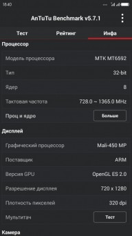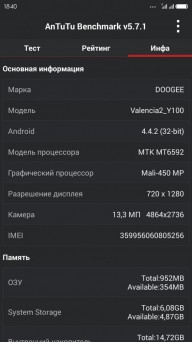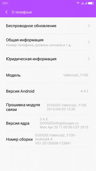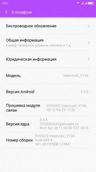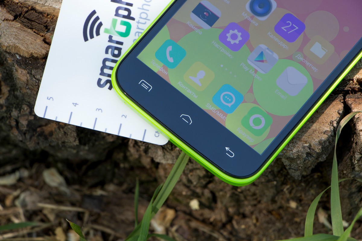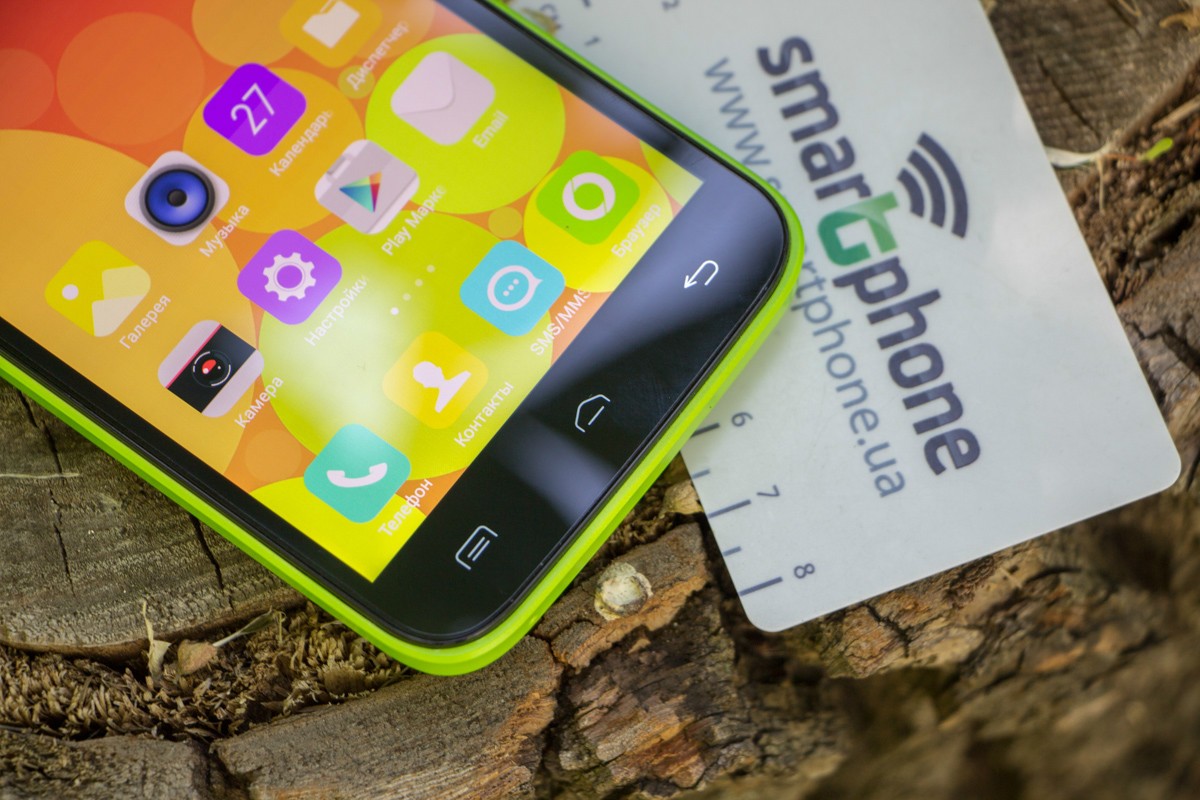 Комплект поставкиВ яркую синюю коробку из плотного картона помимо смартфона в салатовом корпусе положили адаптер питания, micro USB кабель и небольшую инструкцию. Но это еще не все. Производитель не поскупился на дополнительную защитную пленку экрана и салфетку, а также наушники. Последние выглядят прилично, но звук воспроизводят средне. Он чистый, без шумов, но реальности и басов от звучания не добиться. К слову, цена такой гарнитуры-затычек в Китае порядка 3-4 у.е. У нас она обойдется в 150 грн. Для разговоров и прослушивания радио ее будет в самый раз, а вот меломанам стоит использовать более качественный аксессуар. КорпусСмартфон DOOGEE Valencia 2 Y100 предлагается в таких цветах корпуса: черном, белом, желтом, салатовом, голубом и розовом. Выбор палитры зашкаливает разнообразием. На рынке Украины мы такое могли видеть только у Prestigio. Ну и еще Alcatel ONETOUCH пытались разнообразить линейку Android-устройств. Поверхность тыльной крышки получила шероховатое покрытие. Это жесткий не скользкий пластик, который вообще не собирает отпечатков пальцев. Задняя панель прикрывает еще и торцы, чем значительно повышает жесткость конструкции. Таким образом, наверное, производитель добился и качественной сборки, и точной подгонки функциональный элементов, а также отсутствия скрипов корпуса даже при сильном сжатии. По части элементов управления обозначим расположение 3,5 мм аудиоразъема и порта microUSB на верхнем торце, а микрофона на нижнем. Обе механических клавиши расположены справа. Вверху качелька управления громкостью, ниже - кнопка питания. Обе удобные и практически лишены ошибочных нажатий даже в плотном кармане джинс. В задней крышке предусмотрены вырезы под камеру, вспышку и динамик громкой связи. Под ней все традиционно. После снятия аккумулятора открывается доступ к слоту для карты памяти и двум для SIM-карт. Один из разъемов mini SIM, второй - micro SIM. На обратной стороне салатовой панели нанесена специальная плата. Тут оказывается сенсорная панель. Касанием пальца по ней можно перелистывать рабочие столы, открывать панель уведомлений и ярлыков, которая вызывается снизу. В свою очередь двойным тапом или долгим нажатием можно открыть указанное в настройках приложение. Еще одной уникальной технической особенностью смартфона можно назвать три встроенных LED-индикатора. Расположены они на левом торце в верхней части корпуса. Каждый из них отвечает за свою конкретную функцию: сигнализирует о пропущенном звонке, непрочитанном сообщении и новомemail. Предназначение первых двухизменить нельзя, а вот вместо почты можно поставить уведомление о событии с любого другого приложения. В целом корпус смартфона оставил по себе только приятное впечатление. За две недели теста в не щадящем режиме на его панелях не образовалось ни единой значимой царапины. ДисплейЭта трубка получила яркий и насыщенный цветами IPS OGS экран производства компании Sharp. Диагональ 5 дюймов, разрешение - 720х1280. Ссылаясь на ценник тестируемого устройства, это хорошее сочетание. При плотности пикселей на дюйм 320 зернистость видна, только если хорошо присмотреться. Сверху дисплей прикрыт защитным стеклом GorillaGlass третьего поколения. Сенсор отзывчивый, резво отвечает на нажатия пальцем. У меня, правда, иногда были проблемы при попадании по мелким ярлыкам, но это уже зависит от ваших пальцев и настроек отобр