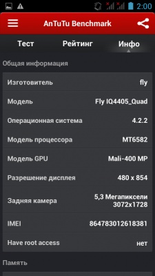Работает Fly Evo Chic 1 под управлением операционной системы Android 4.2.2. «из коробки». Об обновлении оси до более актуального релиза пока не говорится.