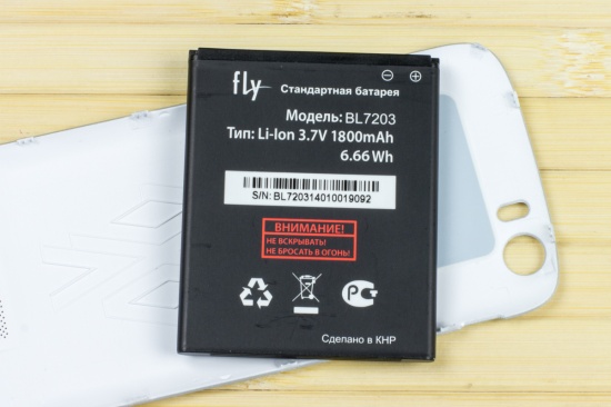 Емкость аккумулятора – 1800 мАч. Производитель обещает до 9 часов автономной работы смартфона от одного полного заряда батареи в режиме разговора (3G) и до 23 (2G).