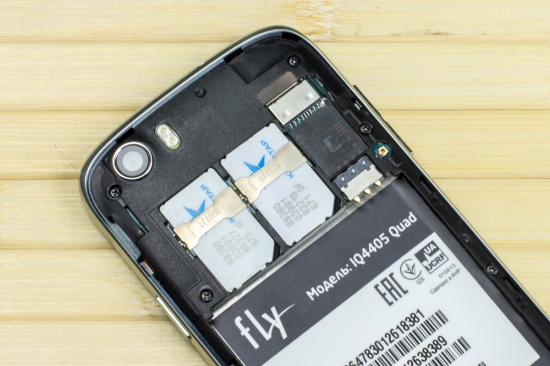 Одна из главных особенностей Fly Evo Chic 1 – поддержка двух SIM-карт. Аппарат работает в 2G/3G-частотах. Радиомодуль здесь один, а потому во время разговора или Интернет-серфинга активна одна симка, а в режиме ожидания – обе.