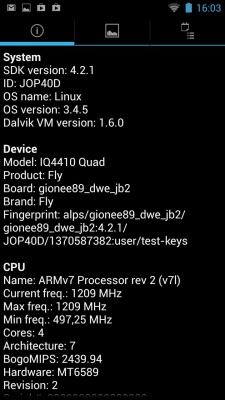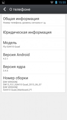 Смартфон Fly IQ4410 работает под управлением операционной системы Android 4.2.1.