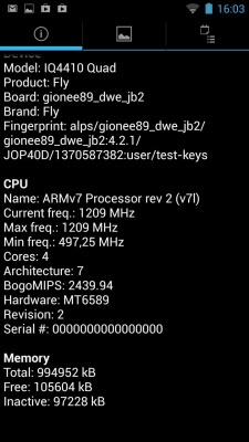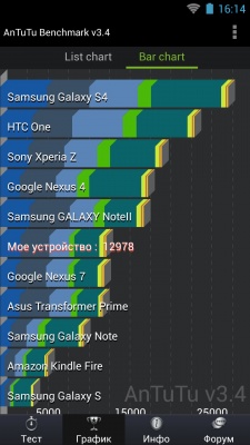 Трубка «укомплектована» 4-ядерным процессором MTK6589, тактовая частота которого 1,2 ГГц. Кроме того, «на борту» 1 ГБ оперативной памяти и отдельный графический чип.