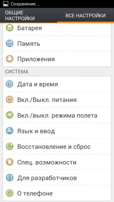 Коснулись изменения и интерфейса подменю настроек. Здесь немного отошли от стандартной Android-ной стилистики. Состоит оно из двух больших разделов – «общие настройки» и «все настройки». Последнее по стилистике напоминает традиционное Android-ное оформление, хотя здесь красиво прорисованные окошки, яркие пиктограммы – словом, выглядит приятнее.