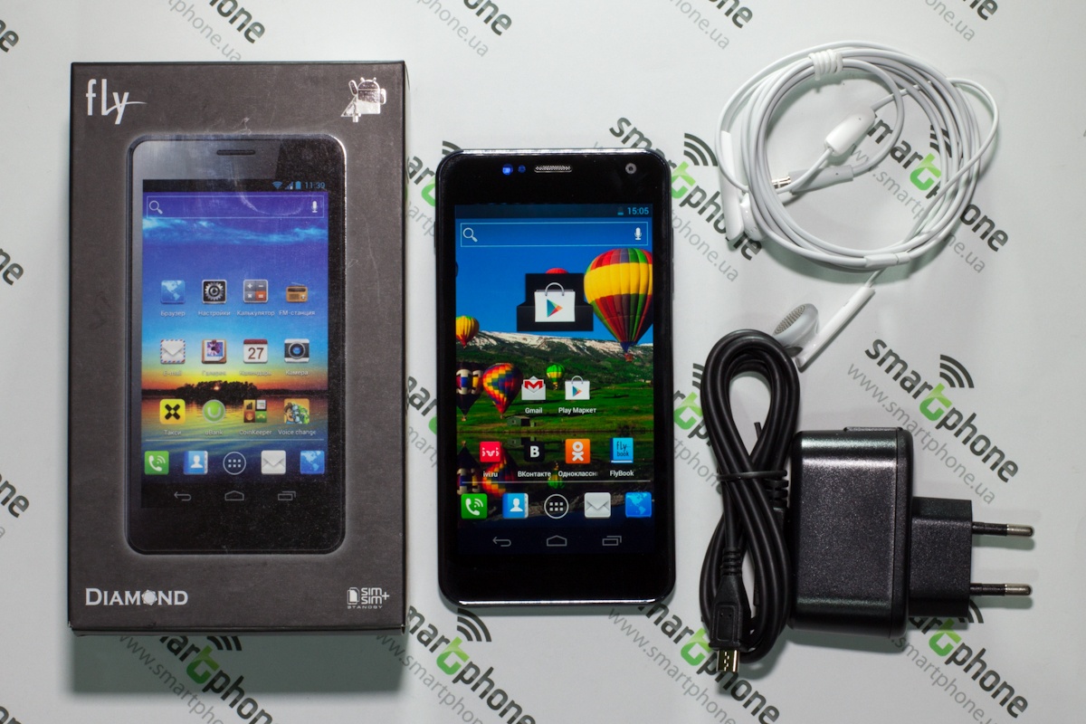 Обзор смартфона Fly IQ444 DiamondПервый смартфон от Fly с Super AMOLED HD – дисплеем. Кроме того, аппарат обладает 2-ядерным 1,2 ГГц процессором, поддержкой режима dual-SIM, 1 ГБ оперативной памяти, весьма неплохим дизайном и толщиной корпуса менее 9 мм. Лень читать текстовый обзор? Смотрите подробный видео-обзор...Упаковка и комплект поставкиFly IQ444 Diamond поставляется в компактной коробке, выполненной из прочного картона. Поверх коробки имеется красочная обертка, на стенках которой пользователь найдет изображение аппарата, его спецификации, различную техническую информацию, а также QR-код, за которым «прячется» информация о других смартфонах Fly. Внутри коробки, кроме, конечно же, самого аппарата, пользователь увидит адаптер зарядного устройства, кабель micro-USB, а также хорошую проводную гарнитуру плюс необходимую документацию на устройство, в том числе, разумеется, и гарантийную. Материалы корпуса и сборкаДоминирующим материалом корпуса Fly IQ444 Diamond является пластик. Из него изготовлен каркас, а также тыльная панель и боковые грани. А вот передняя панель, что говорится, «от корки до корки» покрыта хорошим защитным стеклом! Хотя это и не Gorilla glass, но от потертостей защищает неплохо! По крайне мере, отметин от «катания» на протяжении 10 дней в кармане куртки не образовалось. К качеству сборки претензий нет. Да, корпус трубки из пластика, а самапредельно тонкая, но, тем не менее, материалы между собой «сбиты» превосходно – никакого скрипа элементов или люфта. В руке трубка сидит отлично. Конечно большинство элементов корпуса глянцевые, однако крышка аккумуляторного блока получила весьма неплохую ребристость. Пальцы удерживающей трубку руки на нее ложатся, словно на автомате, и даже длительная непрерывная работа скольжением по ладони не сопровождается. А вот что не очень понравилось – расположение клавиш на боковых гранях. Во-первых, к их ходу придется определенное время привыкать – он, скажем так, туговат! А во-вторых, кнопки расположены таким образом, что пользоваться трубкой удобнее левше, чем правше. Все дело в том, что кнопка блокировки аппарата (она же клавиша включения/выключения питания) вынесена на левый торец, а качелька регулировки громкости на правый. Дотягиваясь до нее пальцем, пользователю необходимо обхватить корпус трубки и только так выполнить необходимое действие. Разумеется, привыкнуть к такому положению вещей можно, но понадобиться время. Здесь, мне кажется, было бы намного интереснее вынести кнопку блокировки на верхний торец – обтекаемые углы свели бы процесс привыкания к минимуму. Крепление крышки аккумуляторного блока на корпус, впрочем, как и выполнение обратной процедуры претензий не вызывает – все удобно и быстро. Люфт между крышкой и корпусом не прослеживается. ДизайнПриставку Diamond аппарат получил не зря! Да, можете упрекать меня в предвзятости, мол, трубки Fly не бывают красивыми – как говорится, право каждого! Но, уверен, что уже несколько секунд посмотрев устройство даже на витрине магазина, вы в корне измените впечатление. Предельно тонкий корпус, текстура тыльной панели, очень красивое обрамление, с виду напоминающее гравировку, темная передняя панель. Словом, как ни крути, но «дешевкой» не выглядит. Эргономика функциональных элементовНа передней панели Fly IQ444 Diamond ничего необычного нет: большой дисплей, диагональ которого 4,65