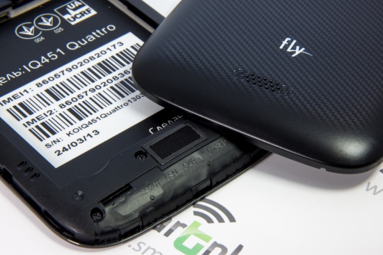 Обзор смартфона Fly IQ451 Vista5-дюймовая модель смартфона от ТМ Fly, в основе которой 4-ядерный процессор. Кроме того, аппарат интересен HD-дисплеем, 1 ГБ оперативной памяти, мощным аккумулятором и 8 Мп камерой с возможностью Full HD видеосъемки. И это все за 2800 гривен. Выглядит слишком интересно, чтобы не остановится более детально. Лень читать текстовый обзор? Смотрите подробный видео-обзор...Упаковка и комплект поставкиСтилистика реализации коробки особых изменений в сравнении с Fly IQ 446, 450 и некоторыми другими смартфонами этой торговой марки не претерпела. Тот же форм-фактор, схожие штрихи в дизайне и расположении информационных сносок, иллюстраций и прочее плюс небольшое обозначение QR-кода на одной из стенок. За ним «скрывается» информация о других Android-смартфонах Fly. Внутри коробки обнаружился традиционный джентльменский набор – адаптер зарядного устройства, проводная гарнитура, а также кабель USB/micro-USB, необходимая документация плюс, разумеется, главный герой повествования – смартфон Fly IQ 451 Vista. Материалы и качество сборкиКорпус Fly IQ 451 Vista с трех сторон пластиковый и только передняя панель, как говорят, «от корки до корки» прикрывается стеклом. Это стекло хотя и не Gorilla glass, тем не менее, на практике я заметил, что оно неплохо защищает от потертостей. По крайне мере, за весь тестовый период, что трубка была у меня, кроме как в кармане джинсов я ее не транспортировал, но отметин на поверхности дисплея в итоге получить не удалось. Проходящий по периметру обод, хотя на первый взгляд и кажется металлическим, в сущности, он пластиковый. За сборку корпуса можно поставить твердые пять баллов. Сами же материалы, хотя и неплохого качества, однако совершенным использованный пластик не назовешь – несущественное поскрипывание имеет место быть. Впрочем, вряд ли этот нюанс будет ключевым во время выбора трубки – повторюсь, скрип едва заметен. Тем не менее, не упомянуть о нем было бы неправильно. Функциональных элементов на боковых гранях немного, к их обустройству претензий нет. Крепление крышки аккумуляторного блока быстрое и надежное – люфта, даже незначительного, не замечено. Надеть ее пользователь, впрочем, как и снять, сможет быстро и без каких-либо затруднений. ДизайнЗа дизайн можно поставить твердую четверку, ну или пять с длинным минусом (выбирайте, что больше нравится). Во внешности Fly IQ 451 Vista единственное, за что стоит сказать спасибо производителю, так это за текстуру тыльной панели – сама по себе выглядит классно, да и общий стиль хорошо дополняет. Кнопки и разъемыС функциональными элементами у Fly IQ 451 Vista, я бы сказал, все традиционно. Передняя панель поделена между огромным 5-дюймовым дисплеем, а также прорезью коммуникационного динамика, глазком фронтальной камеры, датчиками освещения и ориентации, а также тремя традиционными сенсорными кнопками чуть ниже дисплея. Тыльная сторона полностью прикрывается крышкой аккумуляторного блока. В теле ее три вывода: глазок основной 8 Мп камеры, глазок вспышки, а также сетка динамика громкой связи. На правой боковой панели обустроена кнопка включения/выключения питания плюс небольшой зазор, необходимый для снятия крышки аккумуляторного блока. Слева находится спаренная клавиша регулирования громкости звука. Осматривая верхний торец, пользователь обнаружит здесь классический разъем 3,5 мм, а также пор