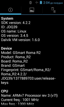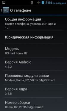 Работает Gsmart Roma R2 под управлением операционной системы Android 4.2.2 «из коробки».