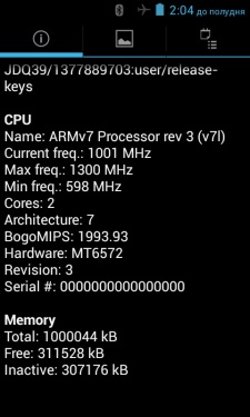 «На борту» 2-ядерный Mediatek MT6572, тактовая частота которого 1,3 ГГц. Объем оперативной памяти — 1 ГБ. Кроме того, имеется достаточно мощная графика Mali400.
