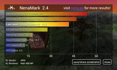 Самый большой плюс дисплея Gigabyte Gsmart Roma R2 в том, что здесь используется IPS-матрица. Диагональ, как уже было отмечено выше, 4 дюйма, а разрешение 480х800 точек. Плотность — 160 dpi.
