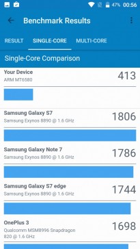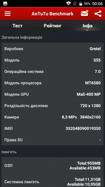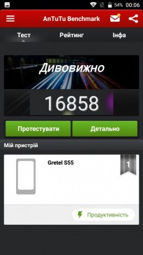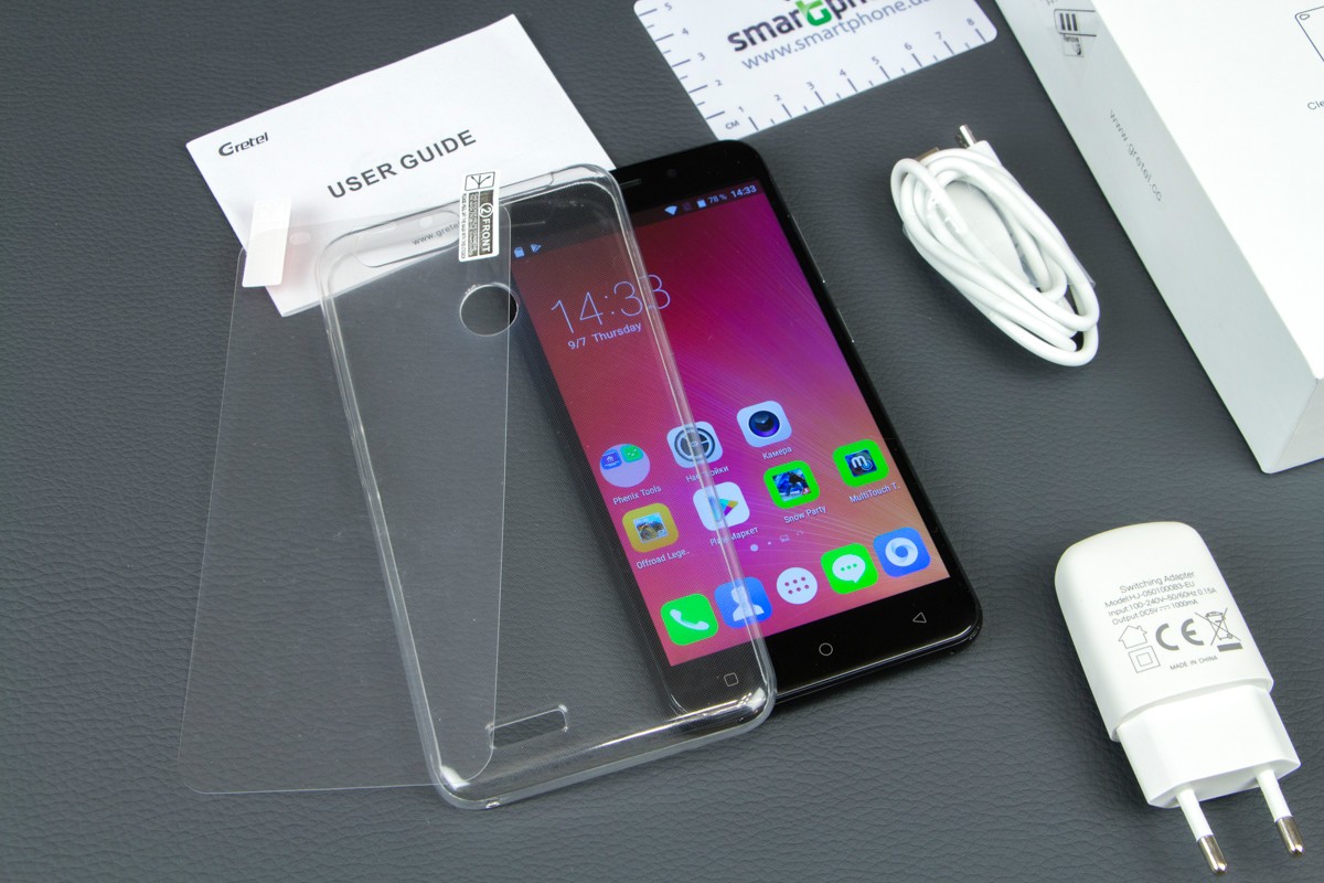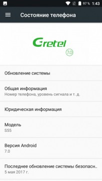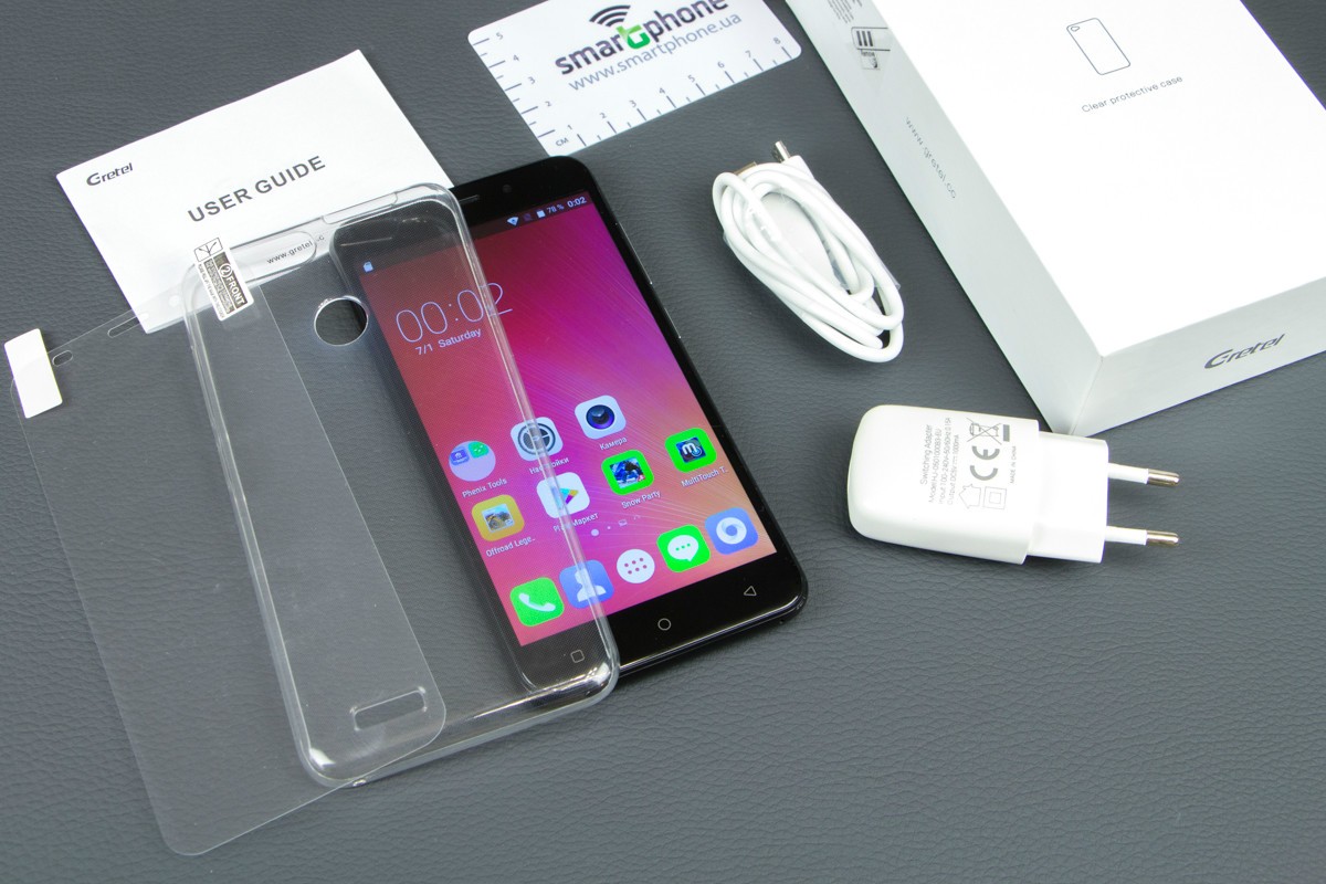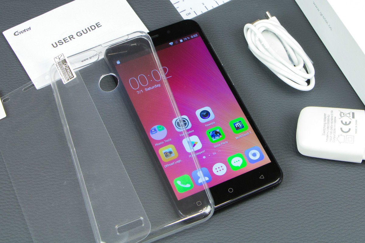 Обзор смартфона Gretel S55: большой дисплей и бюджетная начинкаКомпания Gretel не стремиться в высший ценовой диапазон и продолжает выпускать бюджетные устройства, цена на которые не превышает отметку в $100. Обозреваемый Gretel S55 также относится к этому ценовому диапазону и может понравиться покупателям, которым главное в телефоне - большой дисплей. Наши впечатления, возможности и стоимость трубки далее в обзоре. Комплект поставки Gretel S55 хотя и бюджетный смартфон, но силиконовый чехол комплектацией предусмотрен. Материал мягкий, но к трубке прилегает плотно, а вот нажатие на кнопку питания через него не очень удобное. Комплектацией устройства также предусмотрено самое простое зарядное устройство 5В/1А, кабель USB-microUSB и небольшое руководство по эксплуатации. Дизайн и Корпус Внешне Gretel S55 выделить нечем. Разве что разнообразием цветов. Помимо обозреваемого черного варианта в линейке бренда есть синий, золотой и красный. Металла нет, кругом пластик. Он приятный по своим тактильным характеристикам, ведь черное покрытие имеет софт-тач основу с небольшим глянцевым переливом. Материал немного маркий, но окружающим этот нюанс в глаза бросаться не будет. Зато удерживать немалого размера трубу в руке удобно, и она не пытается выскользнуть из нее (габариты - 153.3 х 77.2 х 8.7 мм, вес - 174 г). Этому способствует и небольшая толщина. Крышка снимается. Она имеет объемную форму и заходит на торцах практически до самого дисплея, упираясь в небольшой пластиковый кант на их стыке. Под задней панелью расположили аккумулятор на 2600 мАч и три слота (2 microSIM и 1 microSD). Без снятия батареи к этим разъемам не добраться. На задней панели расположен сканер отпечатков пальцев и двойная камера со вспышкой. В самом низу - вывод мультимедийного динамика. Решетка не очень большого размера, также как и максимальная громкость, которую он может выдать. Если активировать усилитель через настройки, то субъективно добавляются только лишние басы. На лицевой стороне над экраном выделили место под разговорный динамик. Он утоплен в корпус, так что туда попадает пыль. Обе аппаратные кнопки находятся справа. Их форма удобная для нажатия, а серебристый цвет выделяет эти элементы управления на общем фоне. Внизу выделено место под микрофон, а сверху - аудиовыход и порт microUSB. В целом, по части сборки вопросов к модели S55 нет. Главное, что задняя панель на корпусе сидит плотно, а дисплей вклеен точно и без зазоров. Дисплей Этот компонент у Gretel S55 не идеальный. Он большой - 5,5 дюймов, разрешение составляет всего 720х1280. IPS матрица имеет зернистость, но она не броская и дискомфорта не вносит. Белый цвет матрицы уходит в голубые оттенки. И поменять это через настройки телефона возможности нет. Палец по поверхности скользит плавно и даже на краях не упирается в корпус, ведь дисплей выполнен по 2,5D технологии. Это защитное стекло от Asahi Glass с показателем прочности 7H. Мультитач поддерживает 5 одновременных прикосновений. Олеофобное покрытие заслуживает оценки 5 по 10-ти бальной шкале. А вот углы обзора отличные. Диапазон регулировка яркости скромный, автоматическая регулировка отсутствует. Аппаратная начинка Внутри Gretel S55 установлен бюджетный 4-ядерный процессор Mediatek MTK6580A с частотой 1,3 ГГц. В тестере Antutu (4.4.3) устройство набрало всего 16 тыс. баллов. Это мало и в основном связано с небольшим объемом оперативной памят