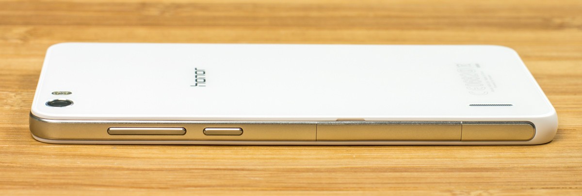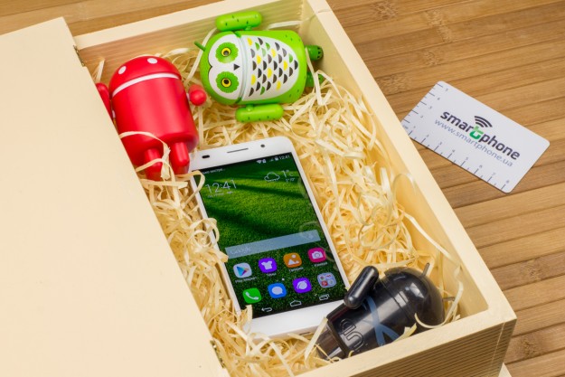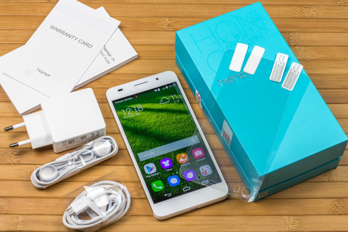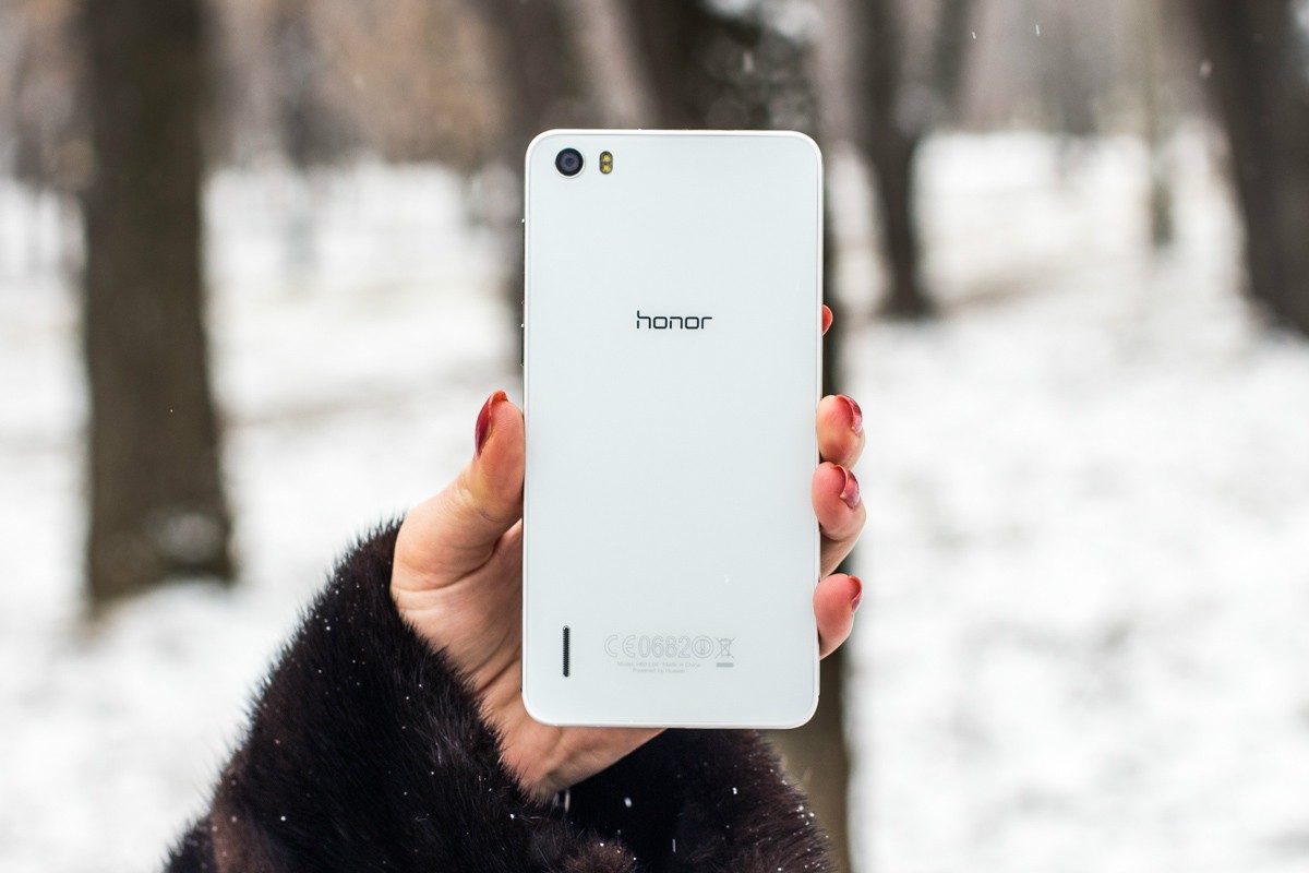 Обзор смартфона Honor 6 — мощь флагмана за доступные деньги!Флагман линейки Honor с 8-ядерным процессором, 3 ГБ ОЗУ, 5-дюймовым Full HD-экраном, аккумулятором на 3100 мАч, а также 5Мп фронтальной камерой и 13Мп основной. При этом средняя стоимость аппарата — $470, что значительно дешевле high-end смартфонов других производителей. Ну а о том, как выглядит трубка и насколько шустрая и плавная в работе, далее в обзоре. Лень читать текстовый обзор? Смотрите видео-обзор...КомплектацияПоставляется Honor 6 в компактной картонной коробке из твердого синего картона, на нижней части которой располагается наклейка с основными сведениями о гаджете. Внутри упаковки помимо смартфона находится кабель micro-USB/USB, адаптер зарядного устройства, инструкция пользователя, гарантийный талон, гарнитура-вкладыши с микрофоном и кнопкой ответа, плюс инструмент для извлечения microSD-карты и симки. Разрабатывая смартфон нового поколения, инженеры Huawei решили оставить в нем от предшественника Honor 3 лишь скругленные края корпуса. В остальном же Honor 6 внешне напоминает больше топовый Р7. Он, к примеру, имеет такой же закругленный нижний пластиковый торец, лишенный ободка, который опоясывает остальные «боковушки» устройства. Кроме того, задняя крышка гаджета изготовлена из сложного композитного материала, очень похожего на стекло, которое досталось тыльной панели P7. И единственное, что несколько удешевляет общую картину флагманского дизайна – рамка корпуса из пластика «под металл». Эргономика функциональных элементов хорошая. Кнопку питания и качелька регулировки громкости, обустроенные на правой «боковушке», можно нащупать даже вслепую. Здесь же находятся слоты для microSIM и microSD карт, прикрытые общей заглушкой. На нижней грани расположен микрофон и порт microUSB, а на верхней 3,5 мм аудиоразъем, микрофон шумоподавления и ИК-порт, предназначенный для управления бытовой техникой. Благодаря скругленным краям корпуса и относительно небольшим как для 5-дюймового смартфона габаритам (см. таблицу) Honor 6 достаточно удобно лежит в ладони, хотя пальцами одной рукой управлять им все же тяжеловато. К тому же немного скользит задняя панель, созданная из шести шаров материала, используемого, по словам производителя, в космонавтике. Он имеет красиво переливающуюся на солнце текстуру и на первый взгляд прочный. Но объективно уровень его качества, конечно же, покажет только длительное время эксплуатации устройства. Из функциональных элементов на тыльной стороне смартфона находятся глазок основной 13Мп камеры, обрамленный тонким металлическим кольцом, двойная светодиодная вспышка, логотип компании-производителя и прорезь под мультимедийный динамик, накрытый сеткой из металла. В свою очередь переднюю панель занимают 5-дюймовый экран, глазок 5Мп камеры, коммуникационный динамик, датчики освещенности и приближения плюс индикатор состояния. Включить или выключить последний можно в меню настроек. К качеству сборки аппарата не придраться — ничего не гнется и не скрипит. На рынке он доступен в двух цветах: черном и белом. Краткие технические характеристики