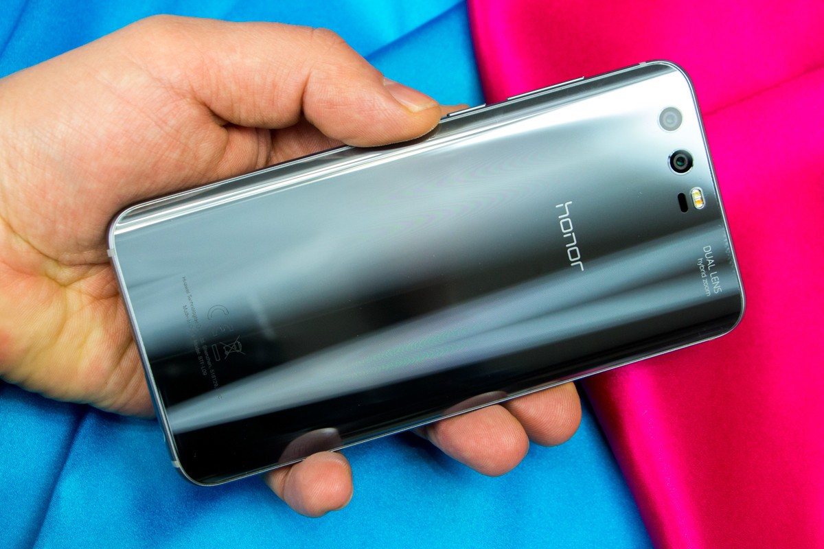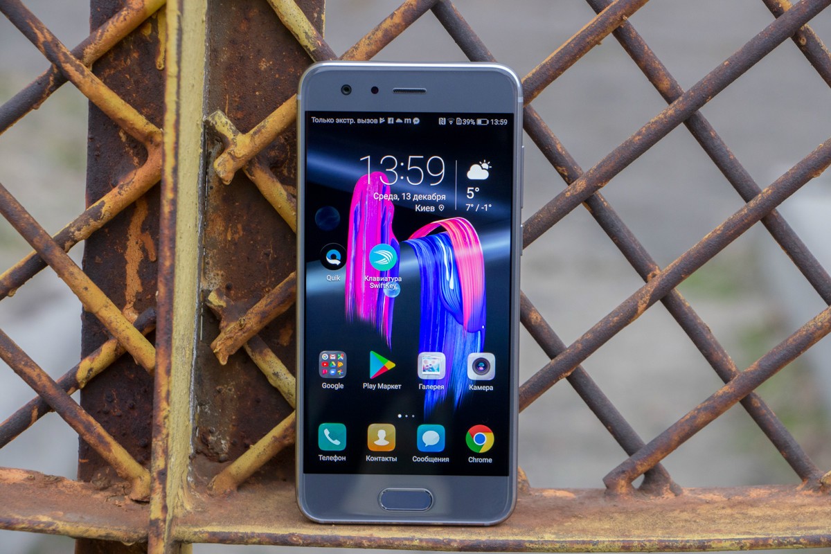 Обзор смартфона Honor 9: хорошо зашел!Компания Huawei под конец 2017 года напомнила о себе выводом на наш рынок бренда Honor и показала его самые интересные новинки. Наиболее стильным смартфоном наша редакция считает Honor 9, который отличается запоминающейся внешностью и отличной подборкой основных компонентов – от процессора Kirin 960 до двойной основной камеры 12 + 20 МПикс. Чем еще может привлечь внимание покупателя флагман «молодежного» подразделения Huawei стоимостью $450 можно узнать из обзора. Дизайн и Корпус Смартфон Honor 9 четко нацелен на молодежную аудиторию, о чем сообщает еще до своего включения. Внешность можно считать той приманкой, которая должна привлечь потенциального покупателя к прилавку именно с этим гаджетом. На обзоре у нас устройство в сером цвете, еще бывает черный и синий. Последний, субъективно, можно считать самым ярким. Черный также хорош, но на нем больше всего видно отпечатки пальцев на тыльной стороне. У нашего серого такая проблема также есть, но она не столь критична. При определенном освещении он становится вообще зеркальным, официальное его название – «Ледяной серый». От марких следов смартфон может защитить пластиковый чехол из комплекта поставки. Он хорошо заходит на торцы, прикрывая дисплей, но делает трубку не такой эффектной. Для себя решили, что основная задача этого аксессуара лишь на первое время уберечь корпус от царапин и вмятин при падении. А далее покупатель должен сам подобрать для себя действительно стоящую защиту или вообще не использовать подобный аксессуар. А вот в руке Honor 9 лежит надежно. В этом помогает цепкий металл на боках, вес в 155 г и компактные габариты 147.3 x70.9 x 7.45 мм. Ширина рамок справа и слева от экрана примерно по 3 мм. Кнопки управления питанием и громкость расположены справа на удобной высоте. Они металлические. Внизу размещен динамик, микрофон, USB Type-C порт и 3,5 мм аудиовыход. Сверху еще один микрофон и инфракрасный порт. Слева на корпусе выдвижной лоток для двух nanoSIM карт или одной симки и карты памяти microSD. На тыльной крышке размещены двойная камера, окошко лазерной системы фокусировки и двухцветная вспышка. Важно, что они не выступают над панелью. Сама крышка выполнена по технологии фотогравировки и в ее основе просматривается текстура из концентрических кругов. В деталях рисунок можно рассмотреть на фотографии ниже. Рамка металлическая и окрашена в цвет панелей. С лицевой стороны, на стыке стекла и металла, полированный срез, который визуально уменьшает рамки на сторонах. Дисплей Главный на лицевой стороне – экран диагональю 5,15 дюйма с разрешением Full HD. Он прикрыт изогнутым стеклом Gorilla Glass 3. К углам обзора, цветопередаче, насыщенности цветов и запасу яркости IPS матрицы не придраться. Она без воздушной прослойки, что дает ощущение картинки лежащей прямо на поверхности смартфона. В настройках предусмотрены режимы защиты зрения, коррекции цветовой температуры и повышения четкости на солнце. Мультитач поддерживает 10 одновременных прикосновений. Палец очень плавно скользит по стеклу, олеофобное покрытие без нареканий. Сканер отпечатков пальцев Этот элемент встроен в центральную клавишу и окружен двумя настраиваемыми сенсорными кнопками с подсветкой. Горят они простыми точками и модифицируются через пункт меню «Навигационная кнопка». Дактилоскопический датчик очень чувствительн