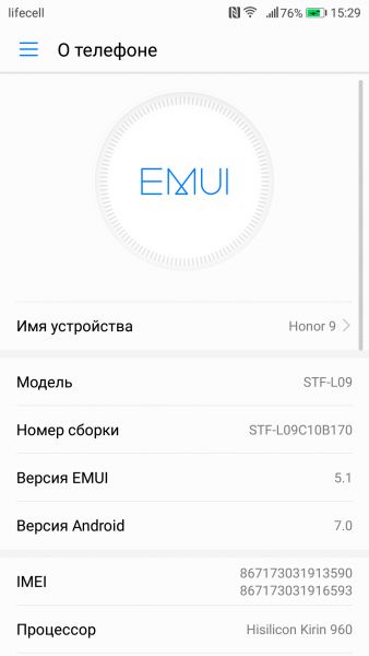 На программном уровне доступно два варианта энергосбережения. Ультра режим оставляет минимальную функциональность (звонки и SMS), но значительно увеличивает время работы. Фирменный режим позволяет ограничить активность программ и уменьшает эффекты по части визуализации. Также пользователь может самостоятельно настроить работу фоновых приложений. ОС, интерфейс, приложения Смартфон из коробки поставляется с Android 7.0 и интерфейсом EMUI 5.1. Общая продуманность меню, расположение элементов настройки и прорисовка деталей должны понравиться и привыкать к ним долго не нужно. На заблокированном рабочем столе, помимо часов, можно увидеть данные шагомера над временем и датой. Передвижение считает сопроцессор i6 и при этом нет нагрузки на основной вычислительный модуль, что положительно сказывается на энергопотреблении. - запись видео экрана и съемка скриншотов тремя разными способами, в то числе и постукиванием костяшками пальцев по дисплею - разделение экрана на два окна - режим управления одной рукой - приложение Quik, в котором можно создавать небольшие истории из комбинации видео и фотографий Вывод Honor 9 – трубка, которая должна понравится. С ней бренд очень ярко зашел на наш рынок и рассчитывает на отличные продажи. С этим трудно не согласиться, ведь в этом телефоне сочетается очень много положительных моментов. Причем этот список внушительный: броская внешность, размеры под управление одной рукой, отличные камеры и NFC с его бесконтактной оплатой. А еще хороший звук, дисплей и быстрая зарядка.