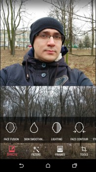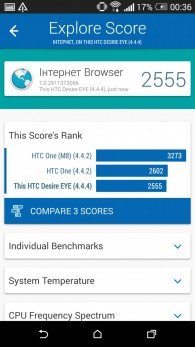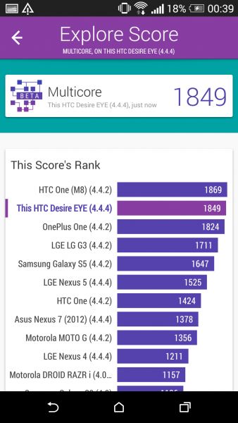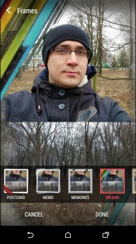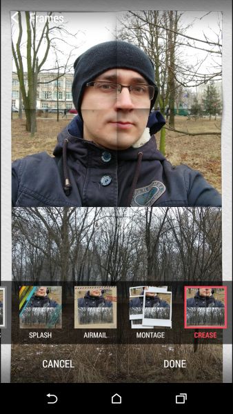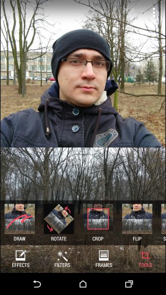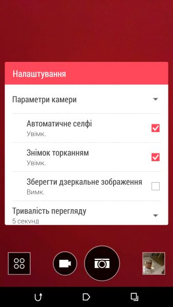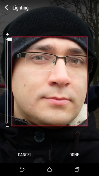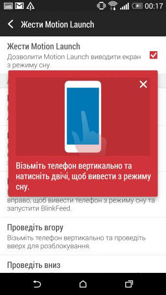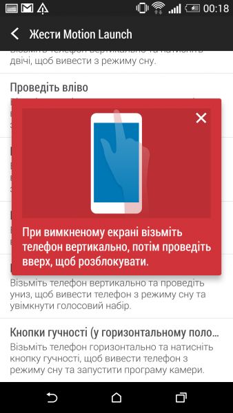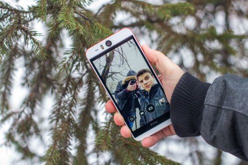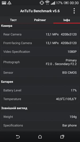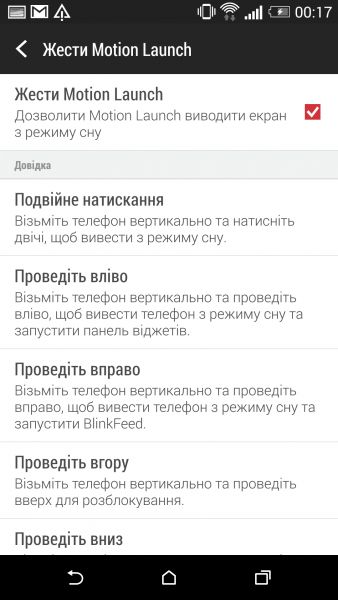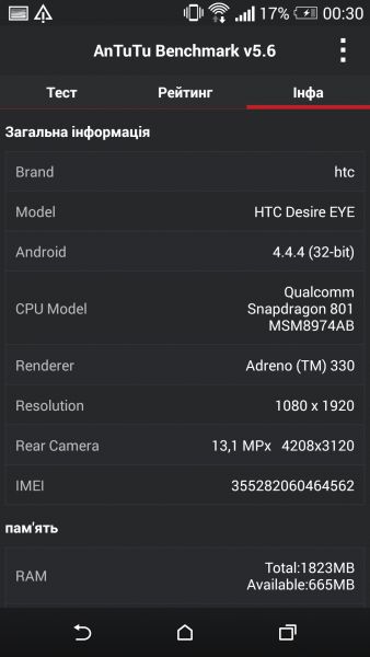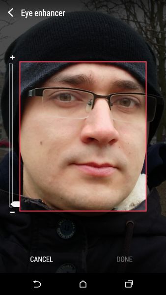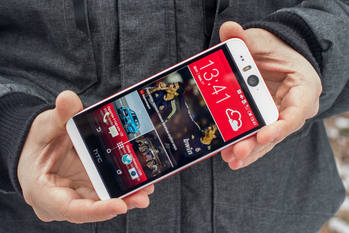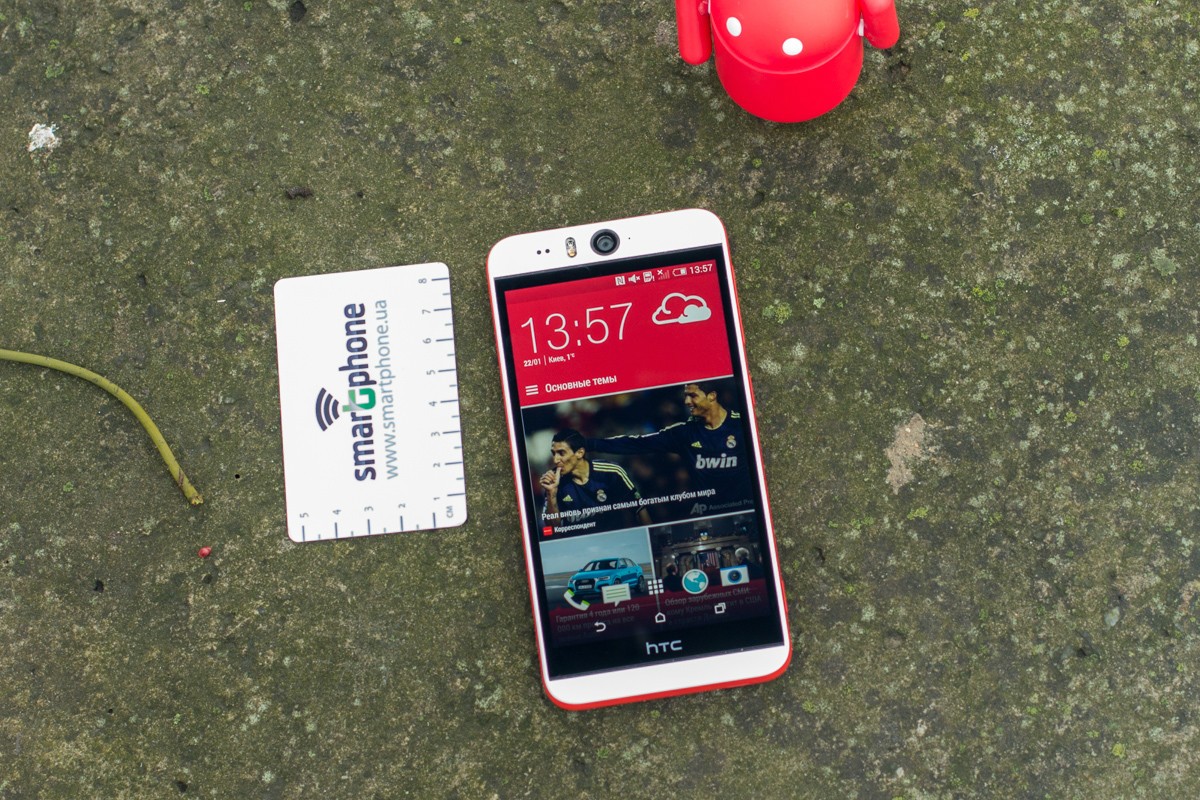 Дизайн и корпусНачнем, пожалуй, издалека - с общего восприятия дизайна и корпуса HTC Desire EYE, а затем быстро перейдем к камерам. Эта трубка - замкнутый моноблок из поликарбоната. Закрытый он в буквальном смысле этого слова. Смартфон не боится погружения в воду на глубину до 1 метра, что, несомненно, уже одно из его достоинств. Даже при сравнительно немаленьких габаритах плавные контуры корпуса хорошо «держат» трубку в руке. Материал не скользкий, приятный софт-тач. На торцах, на месте красного, может быть голубой, а на месте белой тыльной крышки - синий. Цвета яркие, а потому я склоняюсь к мысли, что внешне Desire EYE - это все же молодежный смартфон, как его не крути. Перегиба по весу нет. Заявленные 154 грамма добавляют уверенности и надежности конструкции, особенно когда фотографируешь одной рукой. Сборка на высочайшем уровне, материалы подогнаны плотно. Единственное, что может немного раздражать, - пыль, которая собирается над решетками динамиков. Из резких и прямых линий в дизайне - только рамка дисплея, ну и продолговатые динамики, издающие хороший звук. Но, субъективно, на One M8 звучание лучше. Правда, басы таки отбивают приятную дрожь по ладони, когда играет любимый трек, а в паре с классными наушниками - восторг! И не последняя заслуга в этом технологии HTC BoomSound. Если отвлечься на расположение функциональных элементов, то кнопки управления питанием, громкостью и камерой размещены на правом торце. Слева - слоты под nano-SIM и microSD карты. Аудиоразъем разместили на верхнем торце, а microUSB порт на нижнем. Что ж, HTC Desire EYE выглядит смело, звучит резво, показывает ярко и работает быстро. По двум последним пунктам более детально. ЭкранРазмер экрана - 5,2 дюйма при разрешении Full HD. Картинка сочная и контрастная. Особенно приятно смотреть на нем фильмы в высоком разрешении и играть в тяжелые по графике аркады или шутеры. Покрытие дисплея имеет олеофобный слой, с которого без труда убираются отпечатки пальцев. Сверху экран защищен стеклом Gorilla Glass 3. Аппаратная частьЗа производительность в Desire EYE отвечает 4-ядерный процессор от Qualcomm (Snapdragon 801, 2,3 ГГц ), который дополнен 2 ГБ оперативки и 16 ГБ встроенной памяти. Из коробки пользователю доступно порядка 10 ГБ, остальное забирает операционная система, оболочка и предустановленные приложения. Расширить хранилище можно картами памяти до 128 Гб. USB-OTG также актуален и поддерживается. Из коммуникационных интерфейсов отмечу наличие в HTC Desire EYE Bluetooth 4.0 + aptX, NFC и Wi-Fi IEEE 802.11 a/b/g/n (2,4 і 5 ГГц). Работает трубка на Android 4.4.4, который дополнен пользовательским интерфейсом HTC Sense 6.0, детально рассмотренным в обзоре HTC One M8, и возможностями Motion Launch. Последнее это своего рода упрощенный доступ к разблокировке и управлению смартфоном. Устройство понимает и реагирует, когда вы берете ее в руку и определенным образом проводите по экрану. На скриншотах ниже более подробно показаны возможные варианты Motion Launch. Что ж, повторюсь, HTC Desire EYE выглядит смело, звучит резво, показывает ярко, работает быстро и снимает на весь свой ценник. КамераДелает он это благодаря 13-ти мегапиксельным фронтальной и основной камере с технологий HTC UltraPixel. С каждой стороны по две вспышки. Фото получаются четкими с хорошей детализацией и цветопередачей, причем не только днем, но и в помещении при слабом освещении. Фронтальная камера по своим характеристикам даст фору многим основным ф