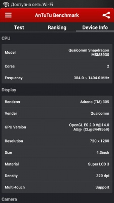 Смарфон оснастили дисплеем на 4,3 дюйма с разрешением 720х1280 точек. В основе S-LCD2 матрица, количество пикселей на дюйм 341. Трубка поддерживает сенсорное управление при помощи двух пальцев одновременно.