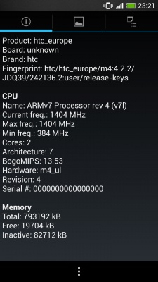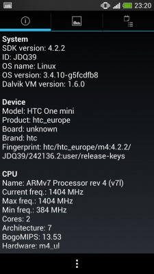 Модель создана на базе 2-ядерного процессора Snapdragon 400 на 1,4 ГГц. Кроме того, внутри графика Adreno 305 и 1 ГБ оперативной памяти DDR2. Этой «начинки» вполне достаточно, дабы обеспечить пользователю комфортную работу интерфейса и уже предустановленных приложений. Хотя, если вспомнить о «внутренностях» оригинального One с его 4-ядерным Qualcomm Snapdragon 600 на 1,7 ГГц и 2 ГБ оперативной памяти, «начинка» мини-версии кажется скромной.