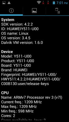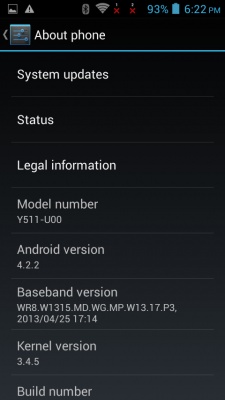 «Из коробки» пользователь получит Huawei Ascend Y511-U00 под управлением операционной системы Android 4.2.2.