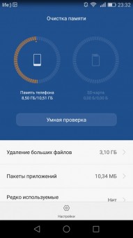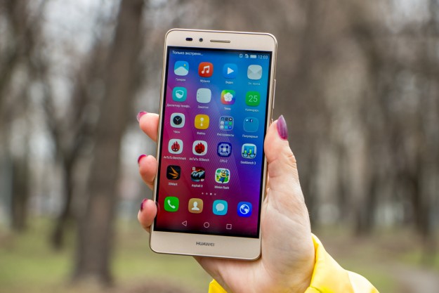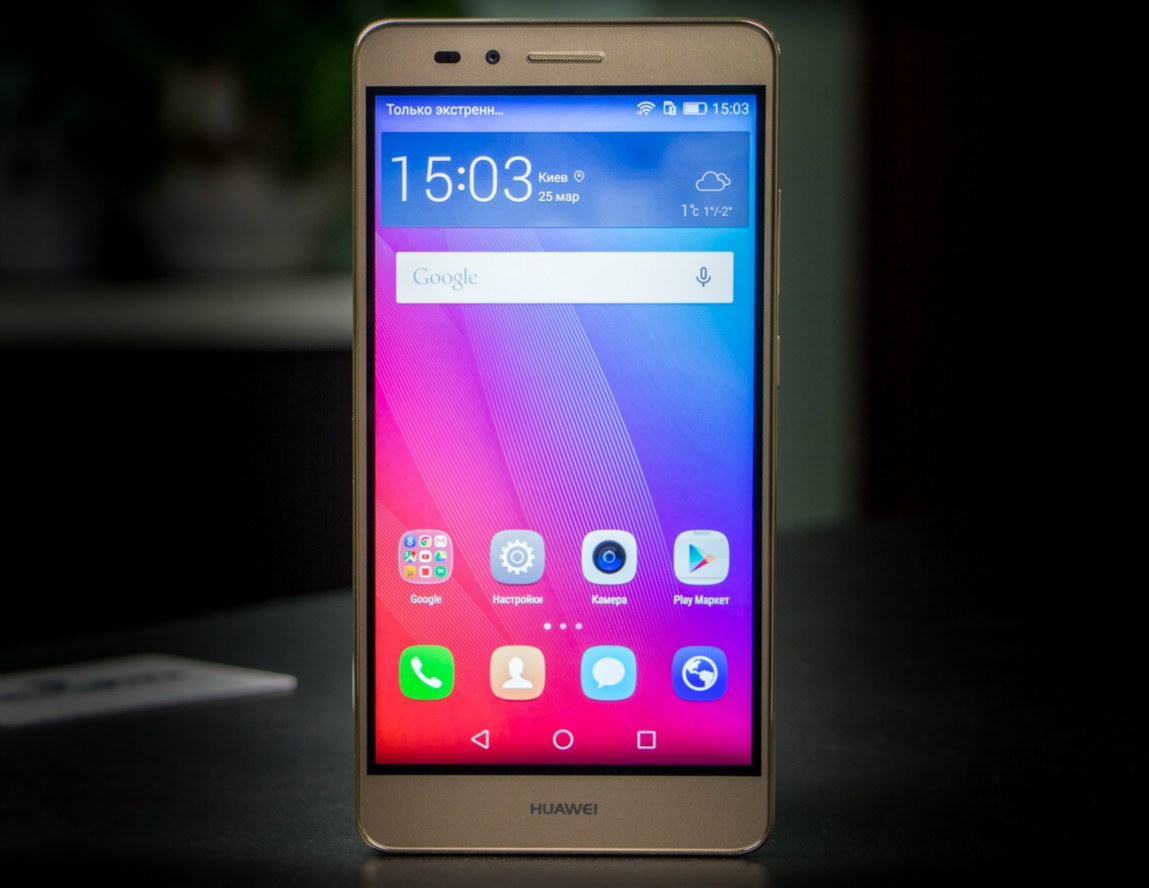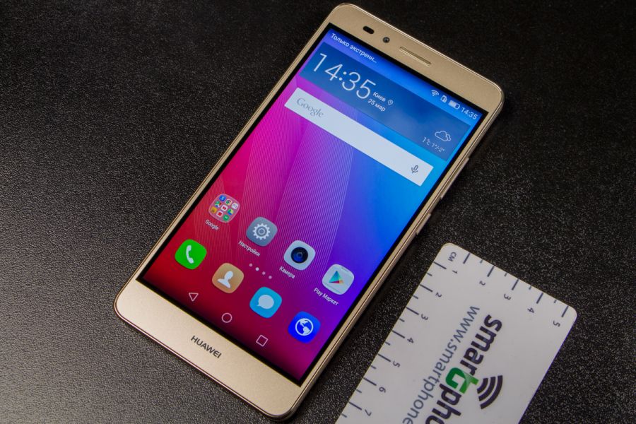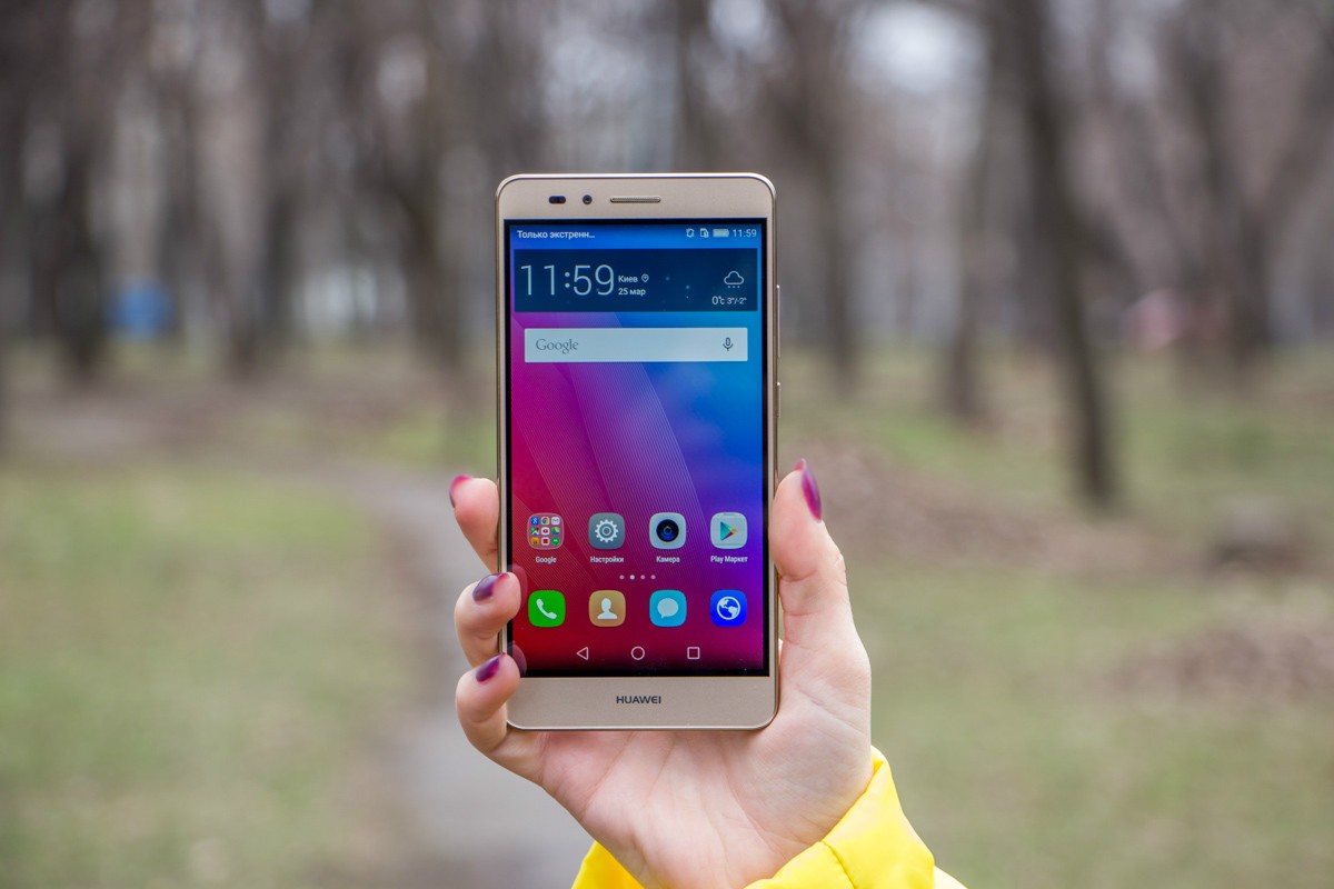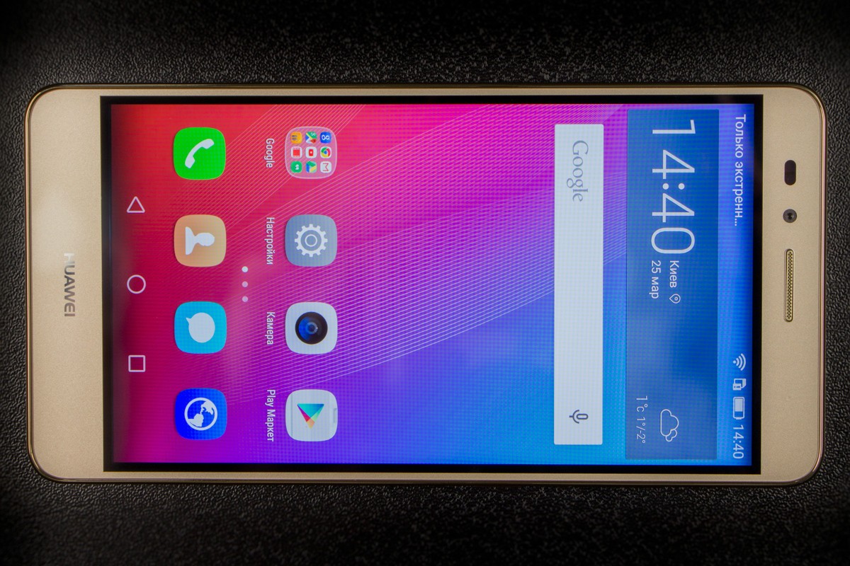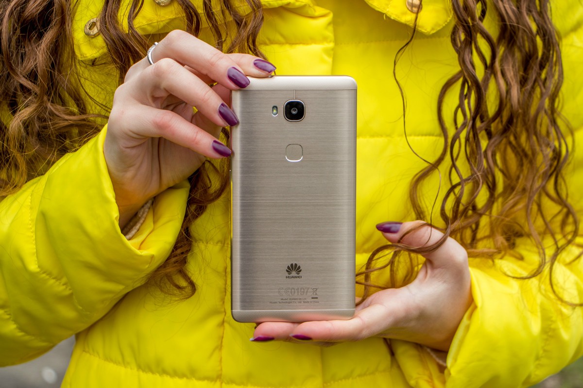 Обзор смартфона Huawei GR5 – «Красиво – не всегда дорого!»Вы до сих пор думаете, что добротный металлический корпус прерогатива флагманов, тогда знакомьтесь с героем нашего сегодняшнего обзора — Huawei GR5. В этом смартфоне стоимостью всего $270 металла предостаточно. Кроме того, в наличии большой качественный экран, многофункциональный сканер отпечатков пальцев и ряд программных «фишек» топовых моделей. Но обо всем по порядку. Лень читать текстовый обзор? Смотрите видео-обзор...Дизайн и функциональные элементыА начнем по традиции с экстерьера. Внешность тестируемой модели не назовешь свежей дизайнерской идеей, это скорее «симбиоз» отдельных элементов дизайна других аппаратов компании. Однако, замечу, гаджетов премиальных, что, как вы понимаете, особенно ценно для GR5, который относится все-таки больше к среднебюджетному сегменту устройств. Одним словам, платишь меньше, а в итоге получаешь цельнометаллический и очень симпатичный девайс серебристого или золотистого цвета, который не хочется выпускать из рук. Впрочем, и для пластика здесь, хотя и немного, но все же нашлось место — глянцевый ободок по периметру экрана и две аккуратные вставки в верхней и нижней части тыльной панели с текстурой то ли под Nexus 7, то ли под пластырь. В любом случае на фоне остальной шлифованной поверхности выглядят они довольно интересно. Плюс ко всему еще и исполняют важную функцию — прячут антенны модулей беспроводной связи. На верхнем торце в них аккуратно встроен вывод микрофона шумоподавления и 3.5 мм аудивыход, а снизу порт microUSB и две решетки — одна то ли для декорации, то ли для симметрии, ну а вторая скрывает вполне реальный мультимедийный динамик. Расположенные на правой «боковушке» смартфона клавиша регулировки громкости звука и кнопка питания под стать корпусу GR5 металлические, однако не гладкие, а с ребристой текстурой, так что палец с них не соскальзывает. А еще они абсолютно не люфтят, имеют в меру тугой ход и фиксацию нажатия. И нужно сказать, очень удобно расположены — тянуться пальцем не приходится. По своим размерам смартфон явно не «дюймовочка» — 151.3 x 76.3 x 8.2 мм при весе 158 грамм. Если в ладонь благодаря слегка покатой тыльной панели он помещается еще без проблем, то вот управлять им пальцами одной руки, откровенно говоря, неудобно. Однако и об этом производитель позаботился заранее, предусмотрев простой режим экрана и режим управления одной рукой. Так что хвататься зубами за поручни в транспорте при наборе SMS-сообщения на GR5, ввиду занятости двух рук смартфоном, точно не придется. Если спереди GR5 особо ничем особым не примечательный, за исключением разве что LED-индикатора событий и экранных кнопок управления, комбинацию которых пользователь вправе, кстати, менять самостоятельно, то его тыльная сторона выглядит здорово за счет блестящей фаски. Последняя украшает края тыльной панели смартфона, а также сканер отпечатков пальцев и LED-вспышку, придавая гаджету еще более стильный вид. Да, все слоты здесь вынесены на левый торец, так как корпус смартфона монолитный. Кстати, собран девайс добротно — нет никаких скрипов при надавливании или сжатии в руке. Вместе с тем проверять на прочность смартфон не советую, даже с учетом того, что здесь сзади металл, а спереди защитное стекло. Как известно, всему свойственно ломаться и царапаться, а потому лучше з