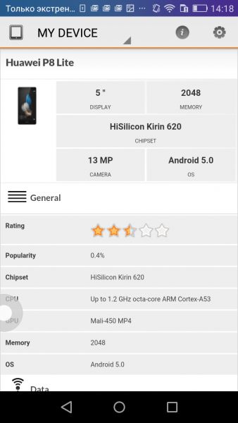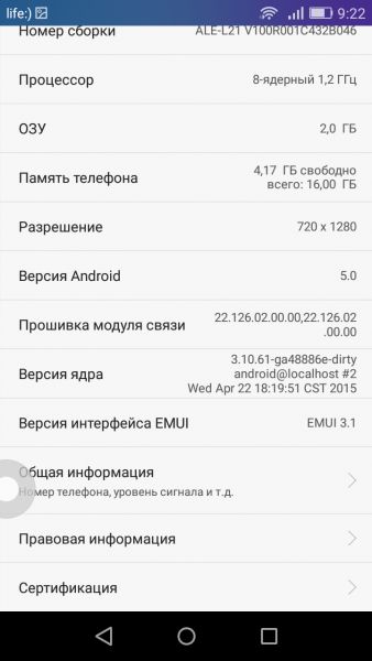 ПОРаботает P8 lite под управлением операционной системы Android 5.0, поверх которой установлена фирменная оболочка EMUI 3.1. Отдельного меню приложений последняя не предусматривает - все ярлыки размещаются на рабочих столах. Из предустановленных утилит отмечу широкий пакет программ Google, фитнес-приложение Huawei Wear, облачный менеджер задач Todoist, приложение для чтения журналов и свежих новостей Zinio, офисный пакет WPS Office, сервис техобслуживания продуктов Huawei Hi-Care и многое другое. Удалось оценить систему управления движениями и жестами. Дважды тапнул по выключенному дисплею — смартфон проснулся, перевернул его — отключил звук входящего звонка/будильника, встряхнул — изменил порядок значков на рабочем столе, начертил пальцем на экране ту или иную букву — открыл определённое приложение. Еще одна полезная функция оболочки — возможность активировать «Кнопку Управления», вызывающую всплывающее меню быстрого доступа к клавишам: Назад, Рабочий экран, Недавнее, Блокировка экрана и Оптимизация одним касанием. ВыводыПриобрести P8 lite можно за $255, а это примерно на $300 дешевле стоимости оригинального P8. Любопытно, ведь, несмотря на столь существенную разницу в цене, P8 lite может предложить и дизайн в стиле флагмана, и качественный экран, и хорошие фотовозможности, и даже NFC-чип, что все еще редкость для смартфонов среднего сегмента. С «железом» тоже никаких проблем, его производительности вполне достаточно для выполнения всех повседневных задач. Несколько смутило лишь невысокое время автономной работы, но для того он и «lite», чтобы быть упрощенным и более доступным в плане цены.