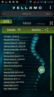 В основе платформы 2-ядерный процессор на чипе MediaTek MTK6577 (ARM Cortex-A9) на 1 ГГц. Оперативной памяти 1 ГБ, дополнительно встроен графический адаптер PowerVR SGX 531. Ниже представлены результаты тестов на производительность.