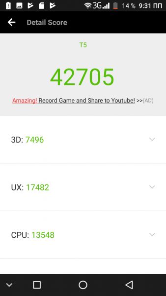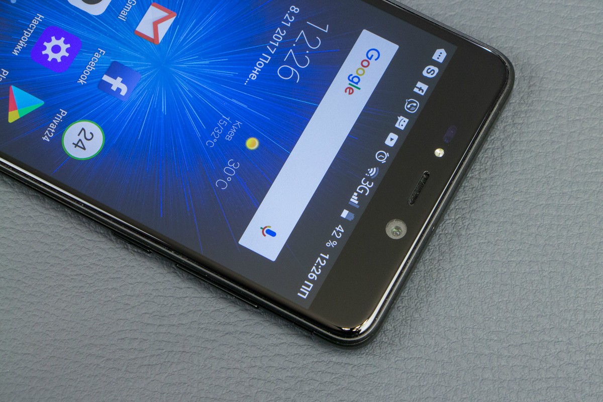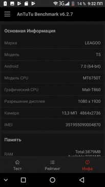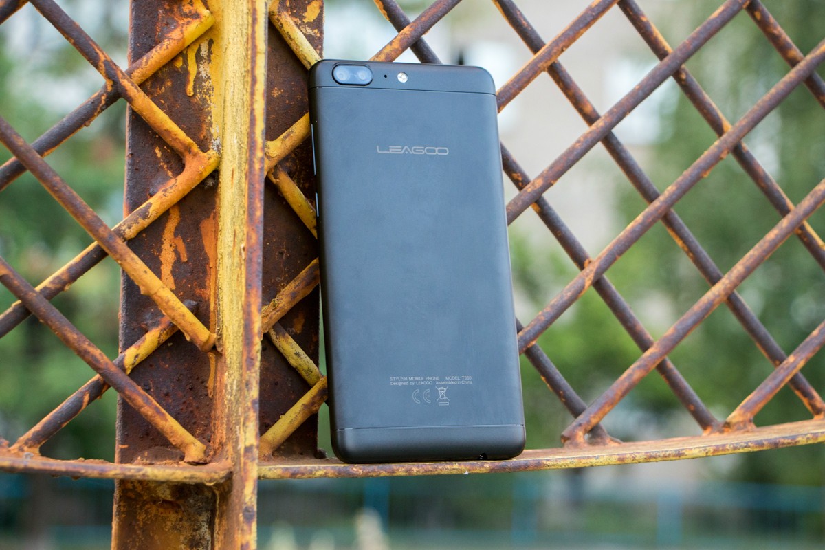Обзор смартфона Leagoo T5: флагман нового форматаСмартфон Leagoo T5 не претендует на попадание в ТОП-100 самых производительных устройств. Но вот в списке телефонов с отличным соотношением цена-качество он может потеснить трубки от многих именитых брендов. У него 4 ГБ оперативки, двойная камера и отличная цена, не превышающая отметку в 130 долларов. Подробности в нашем обзоре. Комплект поставки Leagoo T5 поставляется в красивой белой коробке и не требует покупки дополнительных аксессуаров со стороны пользователя для полноценной его эксплуатации. Внутри есть наушники-гарнитура, силиконовый чехол, кабель и зарядное устройство. Скрепка для открытия слота под SIM карты и небольшое руководство пользователя также присутствует. Дизайн и Корпус Модель T5 не имеет в своей внешности никаких вызывающих и броских элементов. Это понравится людям, которые выбирают смартфон для работы, который часто бывает на виду и не должен привлекать внимание. Подборка качественных материалов и отсутствие огрехов при сборке только укрепляют желание стать его обладателем. Наш черный цвет - это комбинация пластика и металла в тыльной крышке. Материал матовый, так что следы отпечатков пальцев на нем не сильно видны. Матовые пластиковые вставки скрывают за собой радиомодули, в них же производитель разместил разъемы и компоненты. Вверху это двойная камера, микрофон и вспышка немалых размеров. Снизу - основной микрофон, microUSB порт, динамик и аудиовыход. Металл тыльной крышки заходит на торцы и упирается в пластиковую вставку на переходе в 2.5D стекло, прикрывающее дисплей. На левом боку выделили место под выдвижной слот, а справа под две тонкие кнопки. Клавиша питания имеет текстурную гравировку, что позволяет легко определить ее большим пальцем. В руке Leagoo T5 кажется немного широковатым, зато толщина точно нивелирует этот недостаток. Это всего 7.9 мм, которые не отягощают карман и даже в чехле не делают дискомфортным управления трубкой одной рукой. Габариты 153 x 76.1 x 7.9 мм при весе 160 г. В итоге имеем красивый моноблок, который интересен качественными материалами и простым, но стильным дизайном. Сканер отпечатка пальцев В обозреваемом телефоне этот датчик размещен под экраном. Он срабатывает быстро (0,1 с) и практически всегда безошибочно определяет владельца Leagoo T5. Для разблокировки достаточно просто прикоснуться к нему. Каких-либо нажатий с усилием не нужно. Область сканера имеет керамическое покрытие, а за распознавание отвечает технология Smart Touch, запросы которой обрабатывает отдельный чип. Сканер отпечатка пальцев может быть задействован для выполнения еще нескольких функций: кнопка Home, управление фотосъемкой и набор номера. Дисплей Производитель установил в Leagoo T5 экран на 5,5 дюймов с Full HD разрешением. IPS матрица производства SHARP имеет отличные углы обзора и контрастность. Зернистость даже при близком рассмотрении отсутствует (плотность 400 пикселей на дюйм). Изогнутое 2.5D стекло - это Gorilla Glass 4, а значит защита и олеофобное покрытие высокого качества предусмотрены. Из коробки на дисплей наклеена защитная пленка. Запас по яркости позволяет работать со смартфоном даже на ярком солнце. Диапазон регулировки достаточный, хотя минимум можно было бы и уменьшить. С помощью опции Miravision пользователь может настроить несколько параметров отображения, включая цветовую температуру. Апп